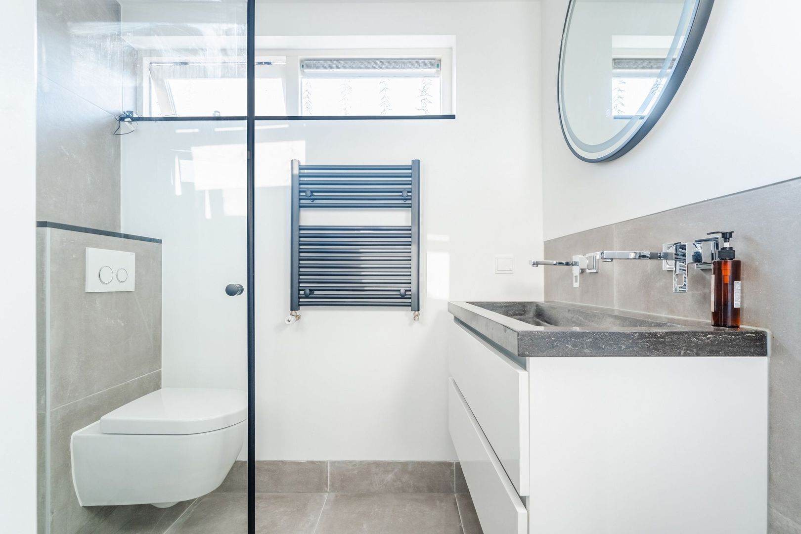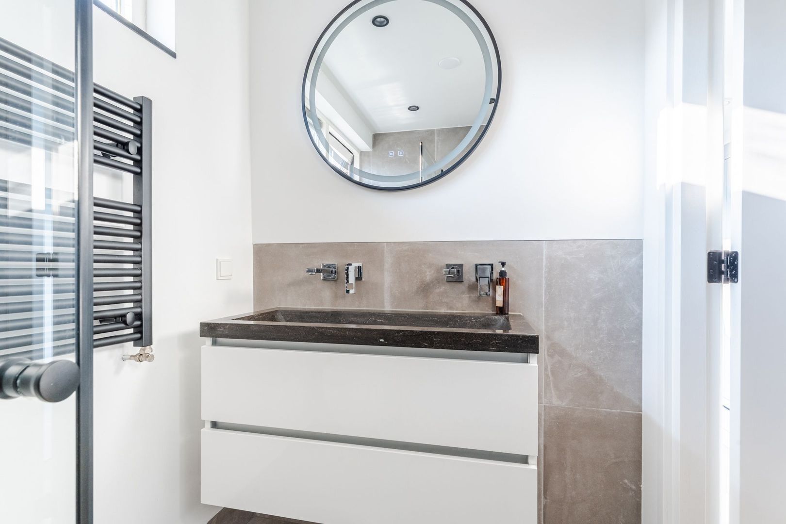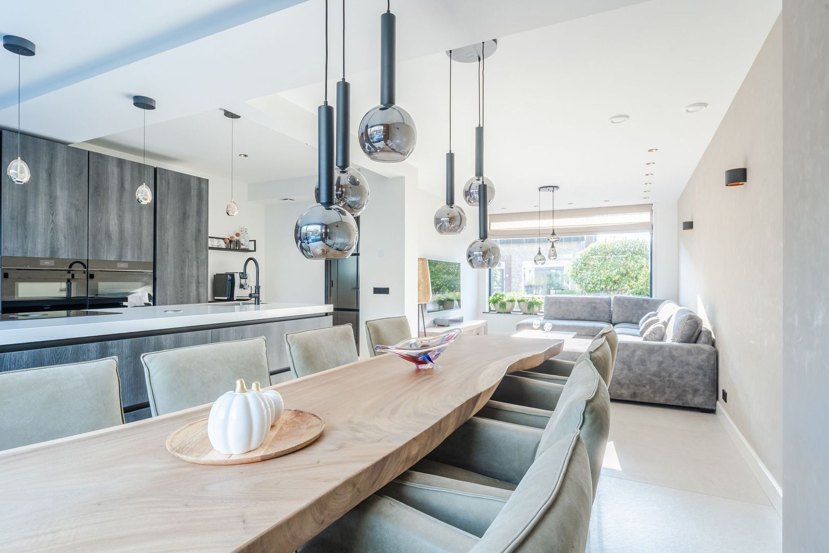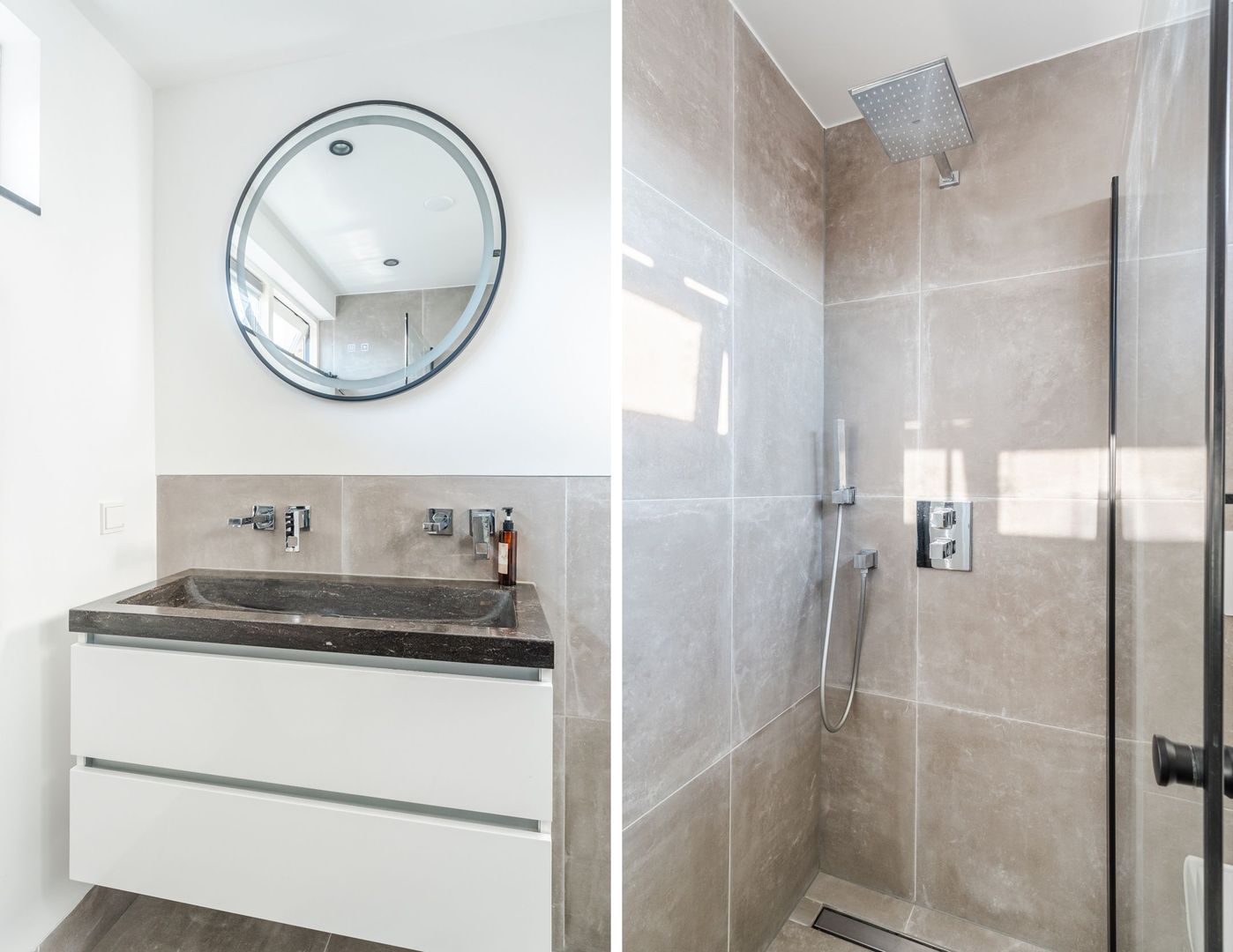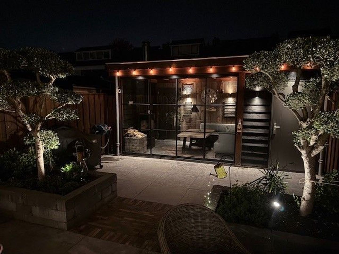 Begane grond: volledig gerenoveerd in 2023!! entree, hal met meterkast, een vernieuwde trapopgang met eiken treden, trapkast en aparte geheel betegelde toiletruimte (2023) v.v. wandcloset en fonteintje. Ruime uitgebouwde L-vormige woon-/eetkamer bestaande uit het zitgedeelte a/d voorzijde en een prachtige woonkeuken a/d achterzijde die middels een schuifpui toegang geeft tot de achtertuin. In de keuken is een fraaie donkere keukenopstelling (2023) geplaatst v.v. koelkast, vriezer, stoomoven, combi-magnetron en een kookeiland met vaatwasser, quooker, composieten aanrechtblad en een luxe BORA kookplaat met ingebouwde afzuiging. De fraai ingerichte achtertuin is gesitueerd op het noordwesten en v.v. een sfeervolle veranda met geïntegreerde berging. De begane grond is afgewerkt met lichtgrijze vloertegels (1,20 x 1,20) met vloerverwarming en sfeervolle inbouwverlichting.