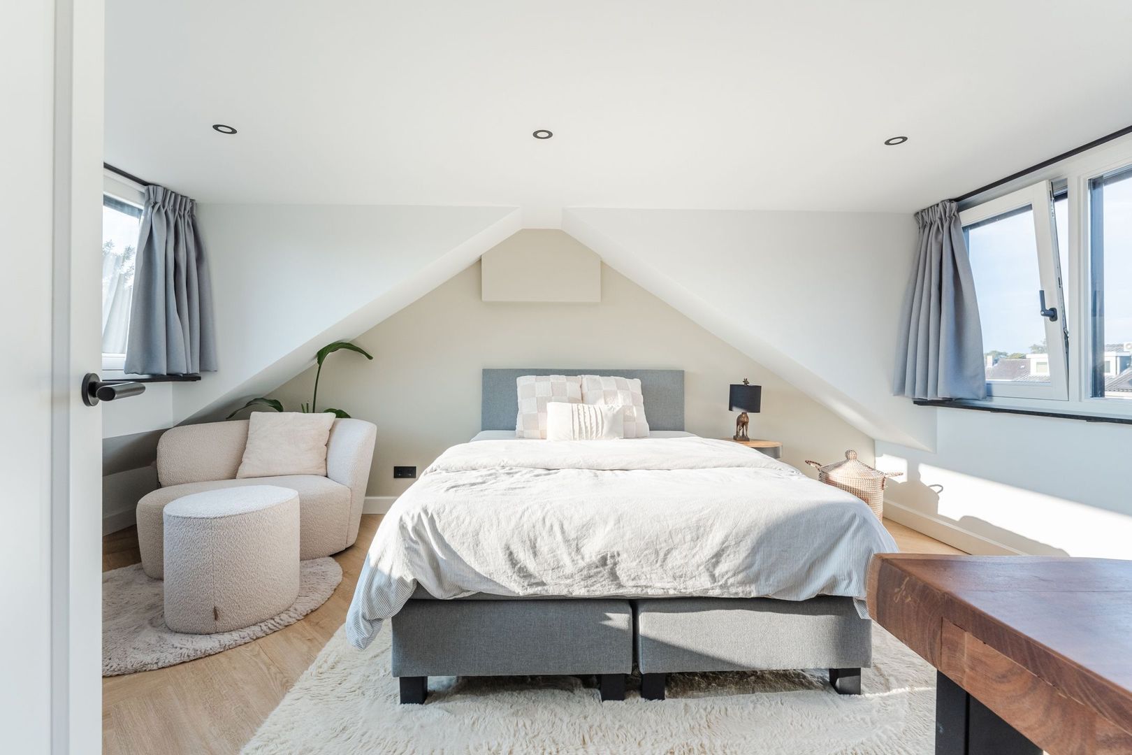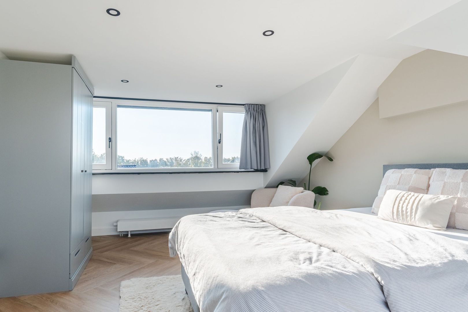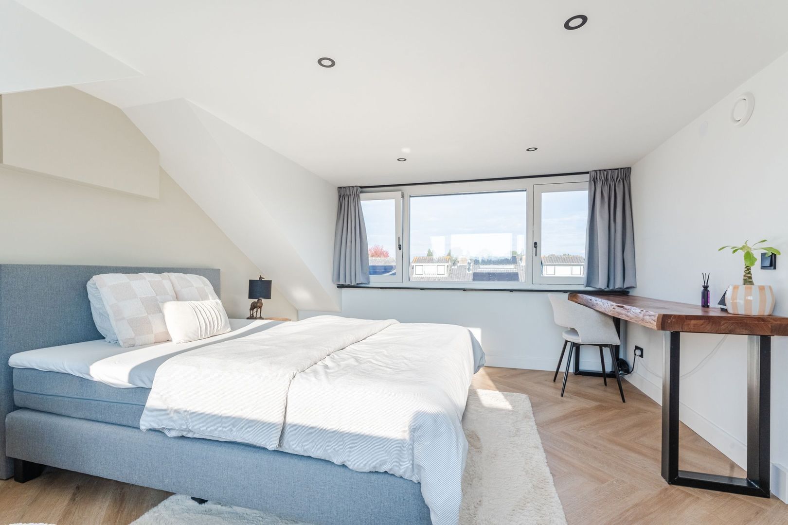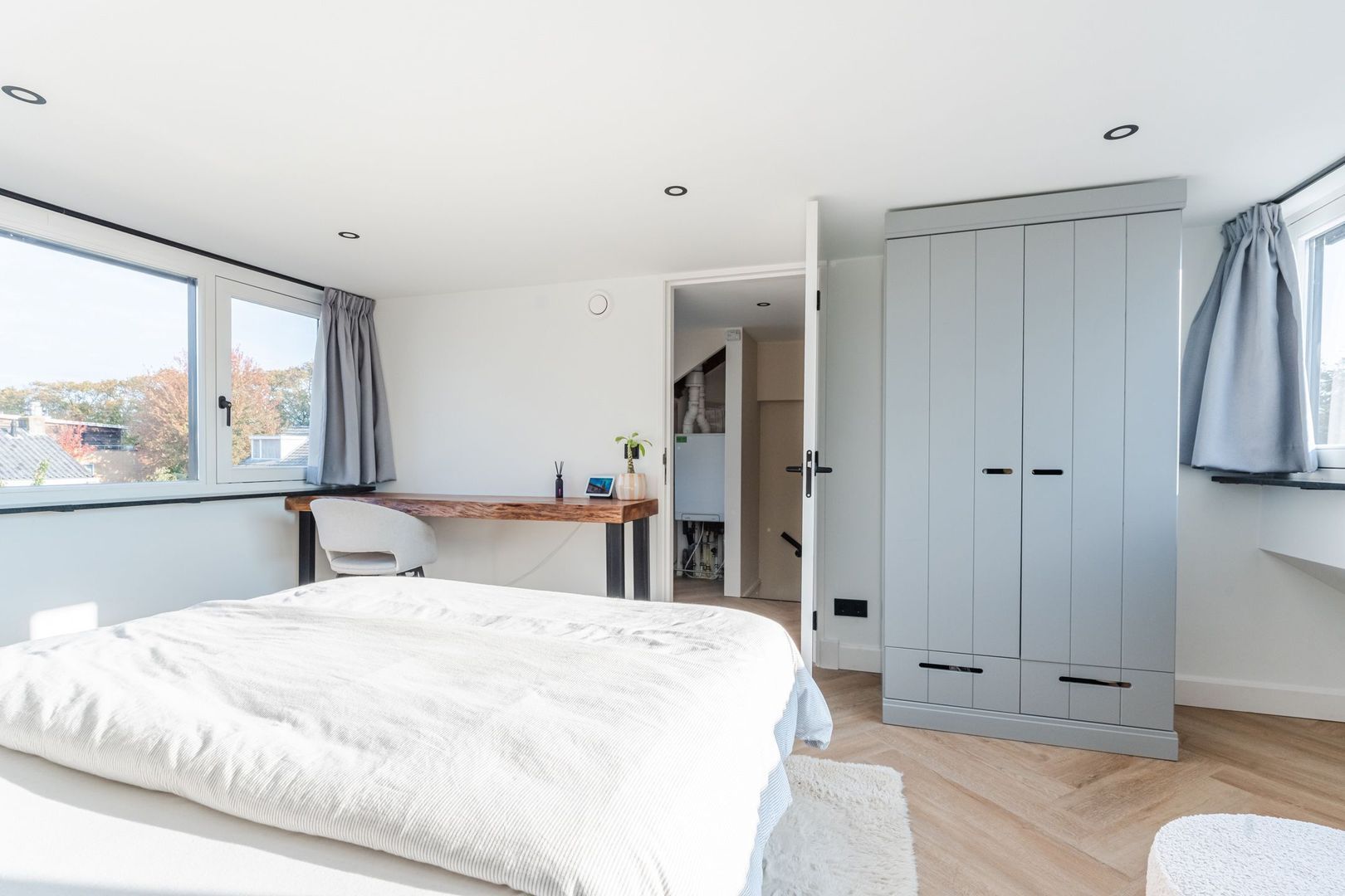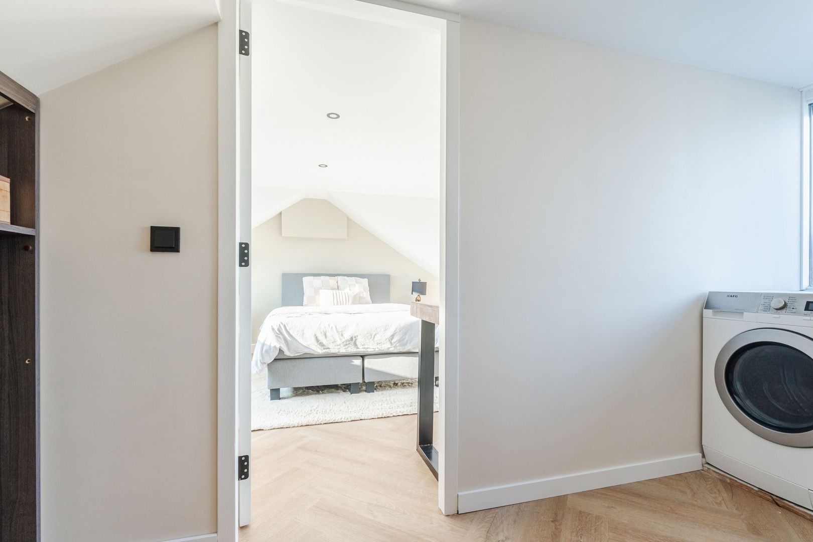 2e verdieping: praktische voorzolder v.v. CV-opstelling en was-/drogeraansluiting. Ruime en lichte 4e slaapkamer welke thans in gebruik is als masterbedroom en is v.v. een dubbele dakkapel. De 2e verdieping is afgewerkt met een PVC-vloer in visgraatmotief.