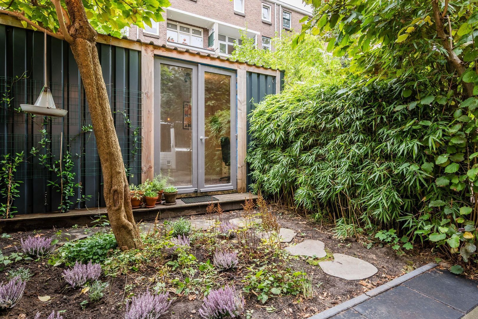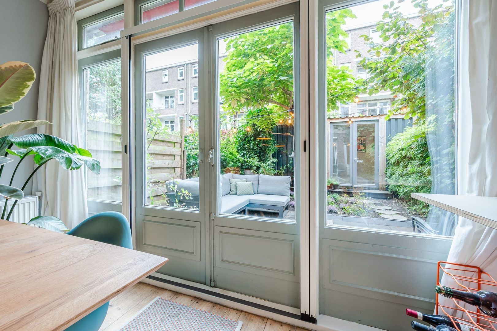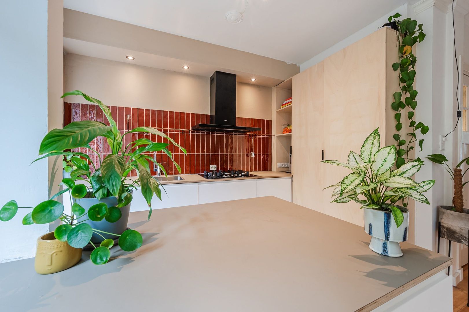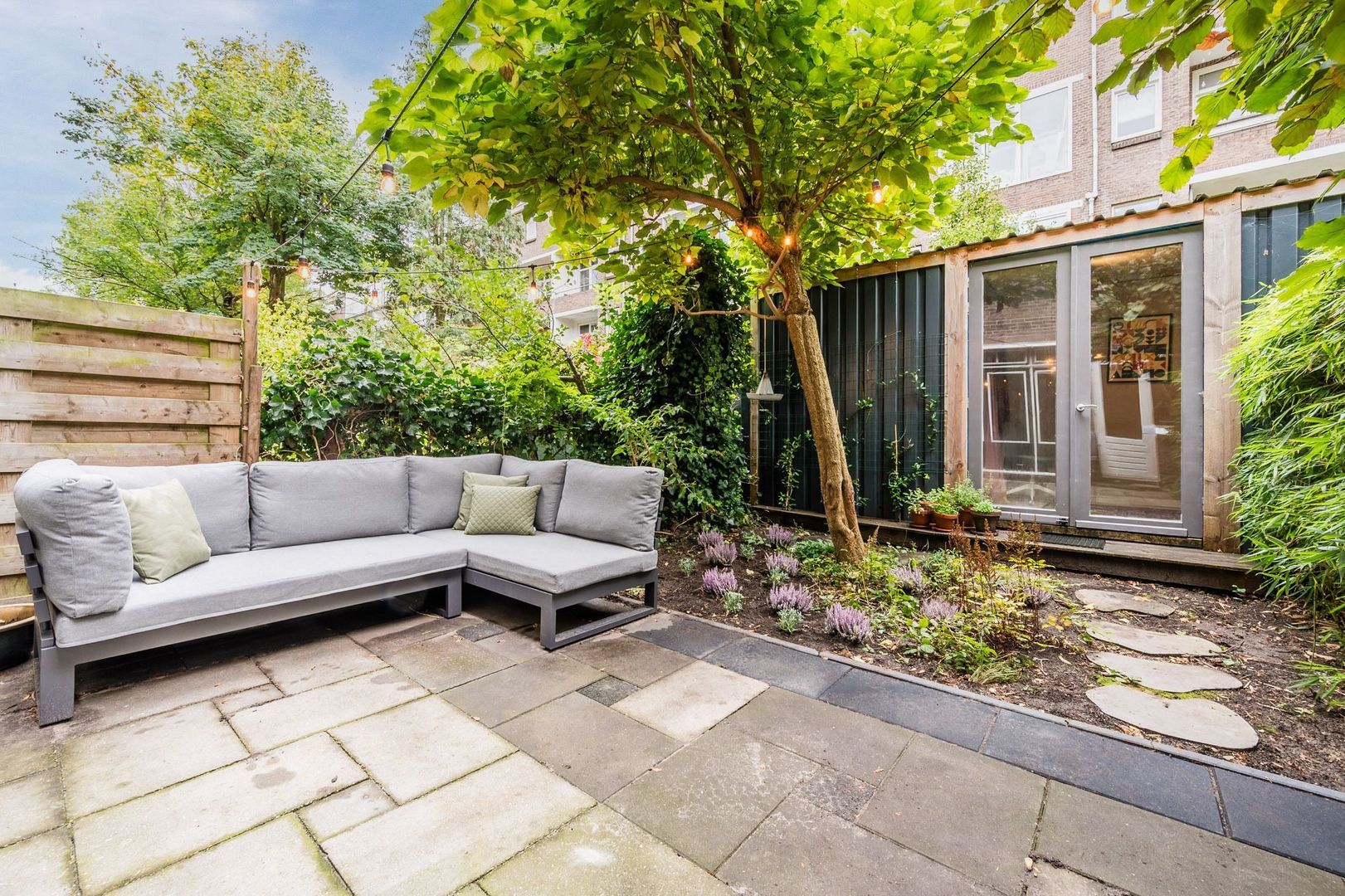 Begane grond: entree, tochtportaal met originele wandbetegeling en hal met aparte toiletruimte (2022) v.v. wandcloset en fonteintje. De slaapkamer bevindt zich aan de voorzijde van het appartement en is d.m.v. een vaste kastenwand afgesloten van de woon-/eetkamer. Ruime en lichte tuingerichte woon-/eetkamer die middels openslaande deuren toegang biedt tot de op het westen gelegen achtertuin v.v. een multifunctioneel geisoleerd tuinhuis die thans in gebruik is als thuiswerkplek annex klusruimte. De a/d achterzijde gelegen open keuken is v.v. een moderne L-vormige keukenopstelling (2021) v.v. 5-pits gaskookplaat, afzuigschouw, vaatwasser, ruimte met was-/drogeraansluiting en CV-opstelling en werkeiland met oven. De modern ingerichte badkamer (2024) is v.v. inloopdouche, wastafelmeubel en inbouwverlichting. Het appartement is afgewerkt met een sfeervolle houtenvloer.