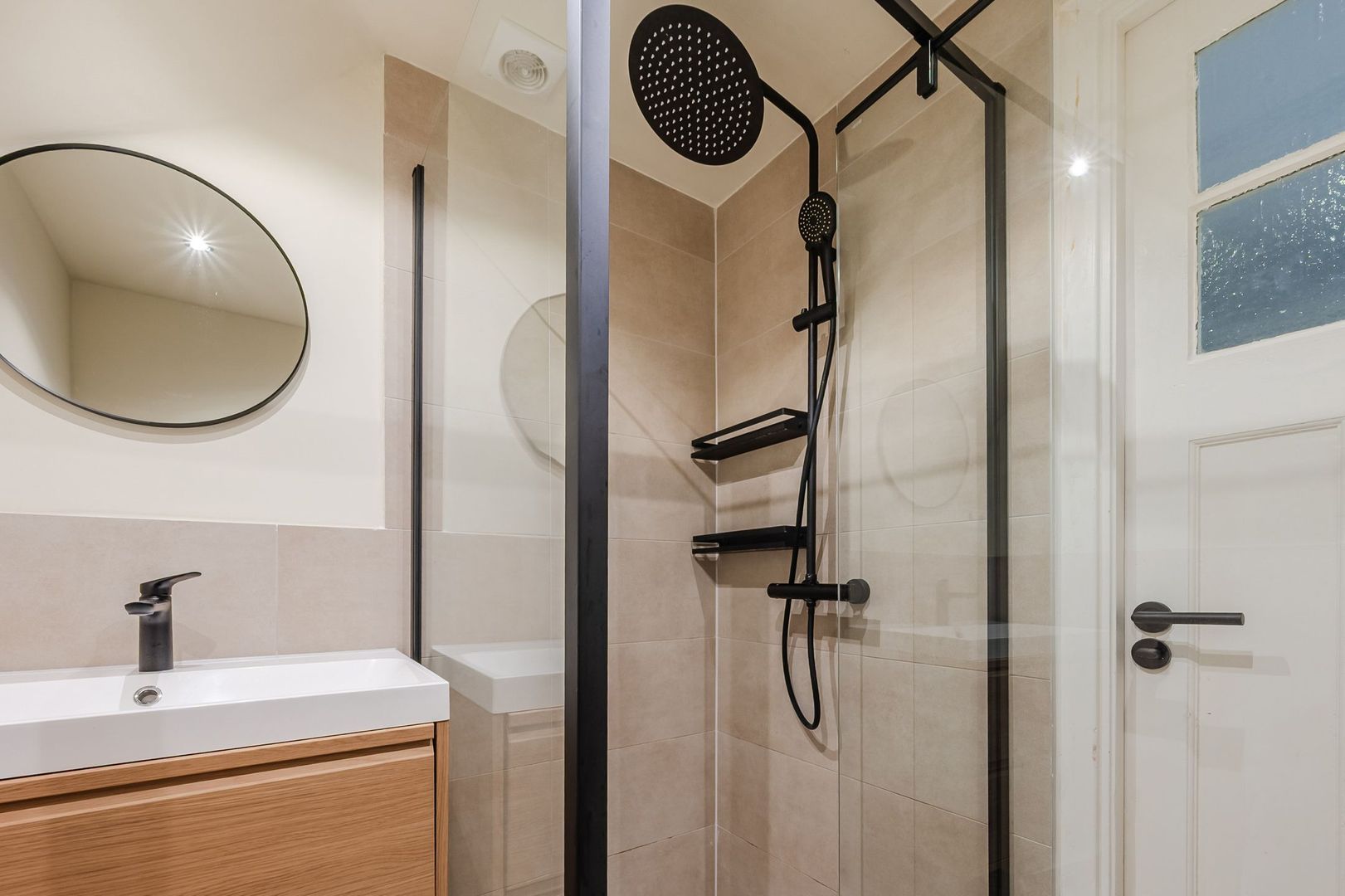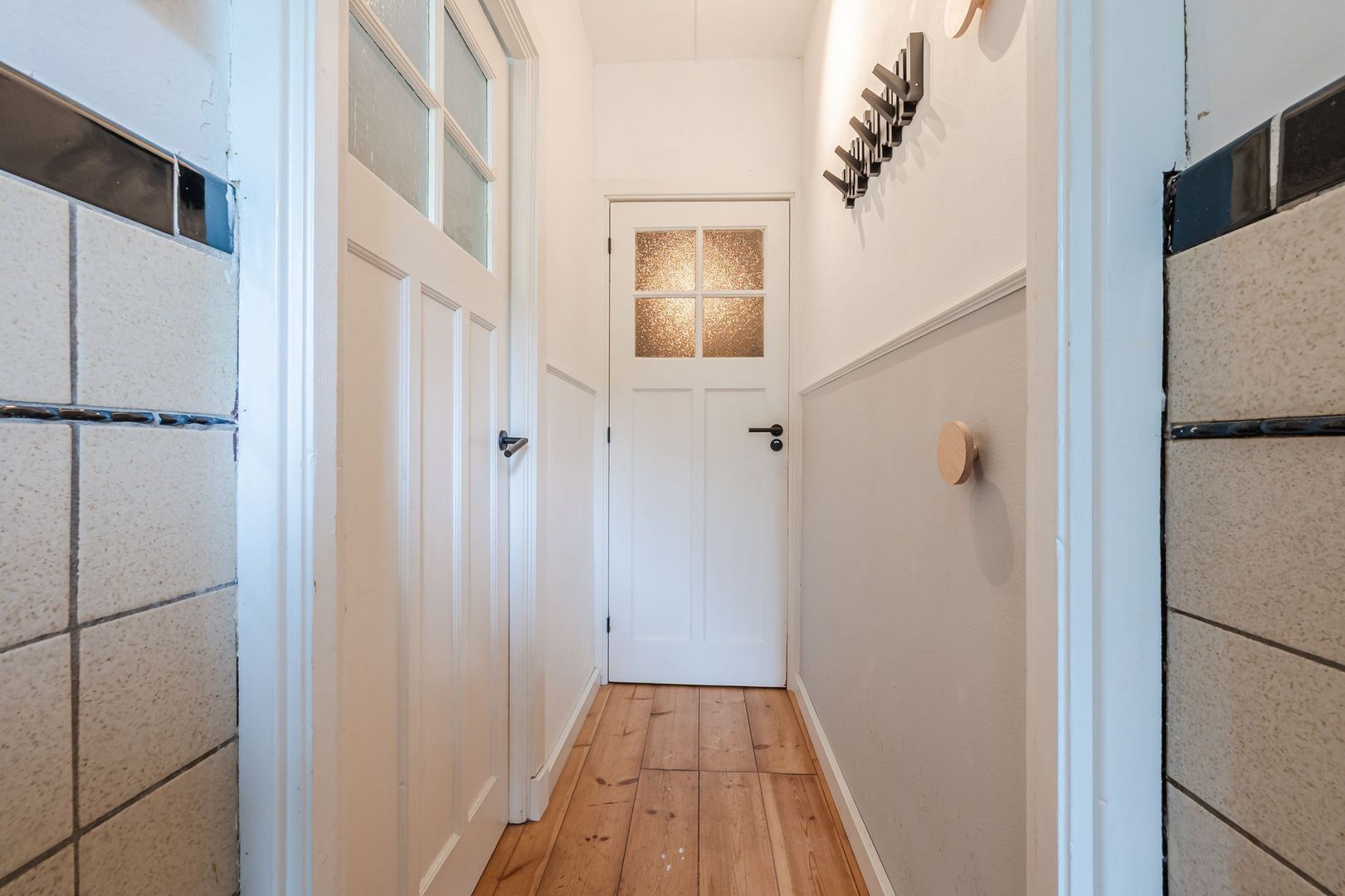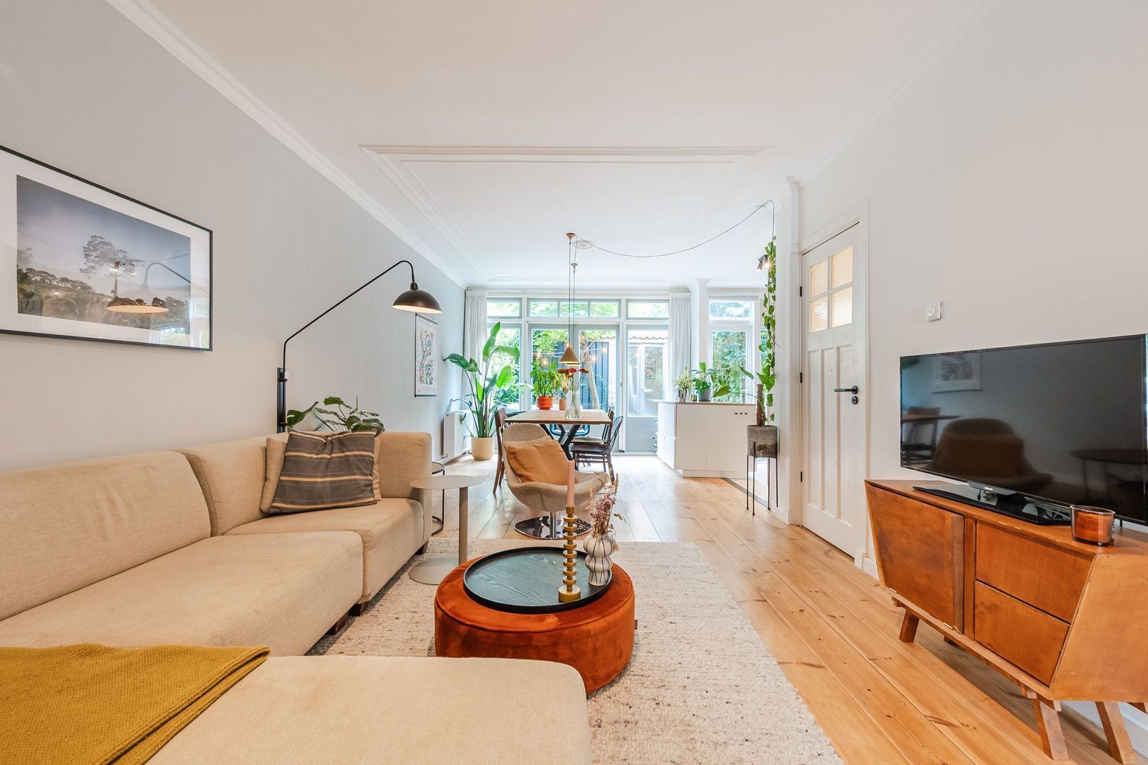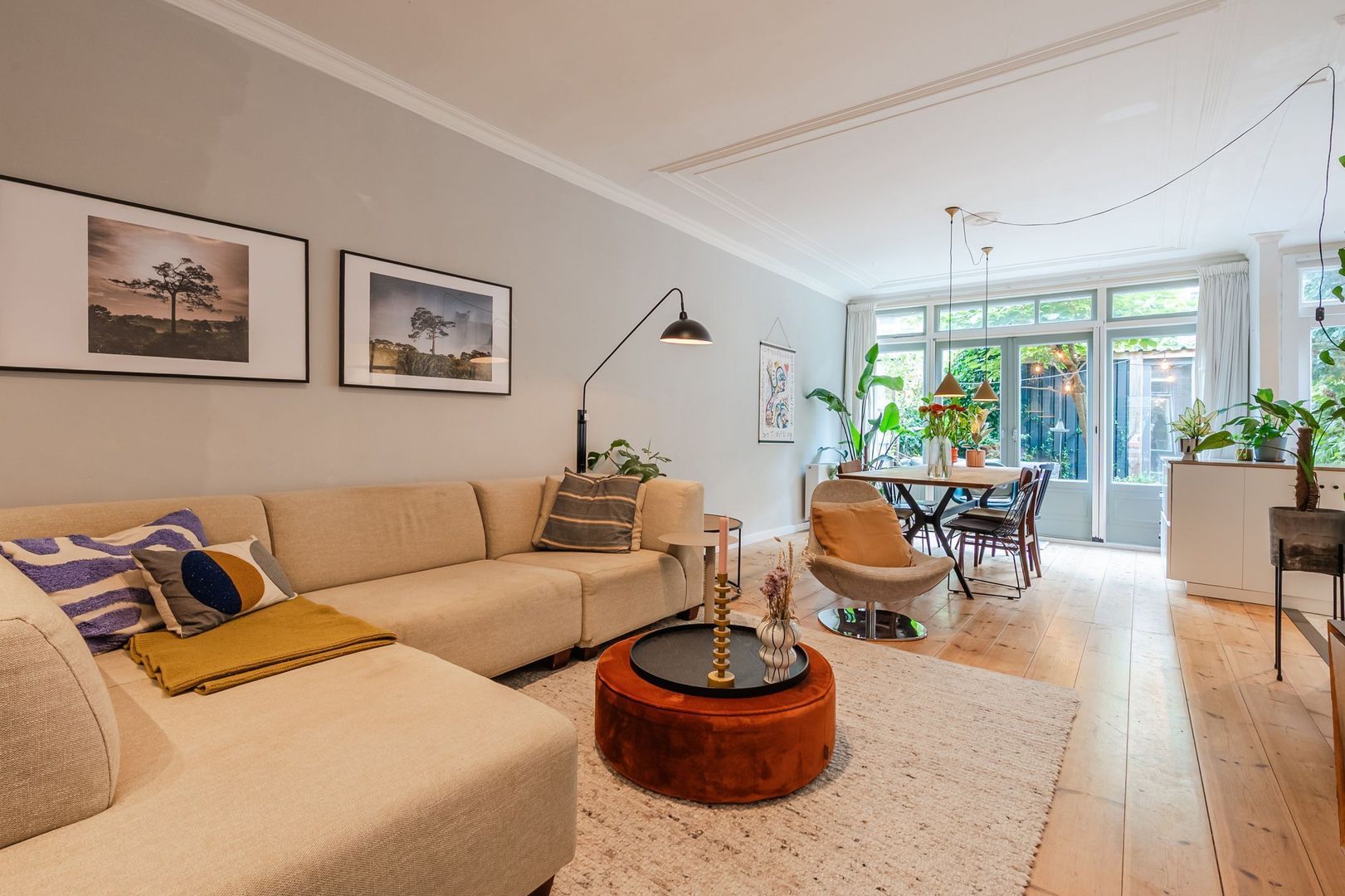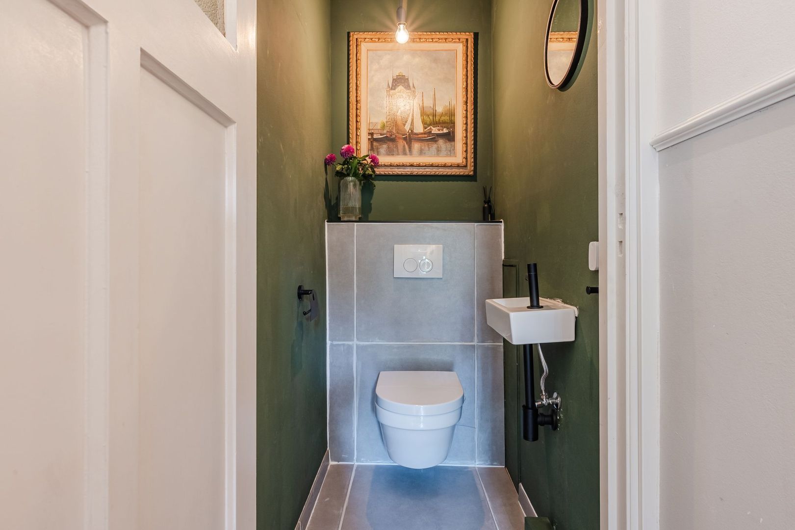 Begane grond: entree, tochtportaal met originele wandbetegeling en hal met aparte toiletruimte (2022) v.v. wandcloset en fonteintje. De slaapkamer bevindt zich aan de voorzijde van het appartement en is d.m.v. een vaste kastenwand afgesloten van de woon-/eetkamer. Ruime en lichte tuingerichte woon-/eetkamer die middels openslaande deuren toegang biedt tot de op het westen gelegen achtertuin v.v. een multifunctioneel geisoleerd tuinhuis die thans in gebruik is als thuiswerkplek annex klusruimte. De a/d achterzijde gelegen open keuken is v.v. een moderne L-vormige keukenopstelling (2021) v.v. 5-pits gaskookplaat, afzuigschouw, vaatwasser, ruimte met was-/drogeraansluiting en CV-opstelling en werkeiland met oven. De modern ingerichte badkamer (2024) is v.v. inloopdouche, wastafelmeubel en inbouwverlichting. Het appartement is afgewerkt met een sfeervolle houtenvloer.