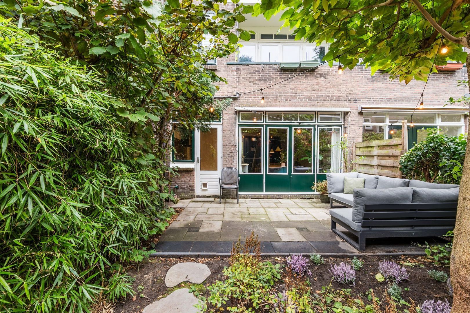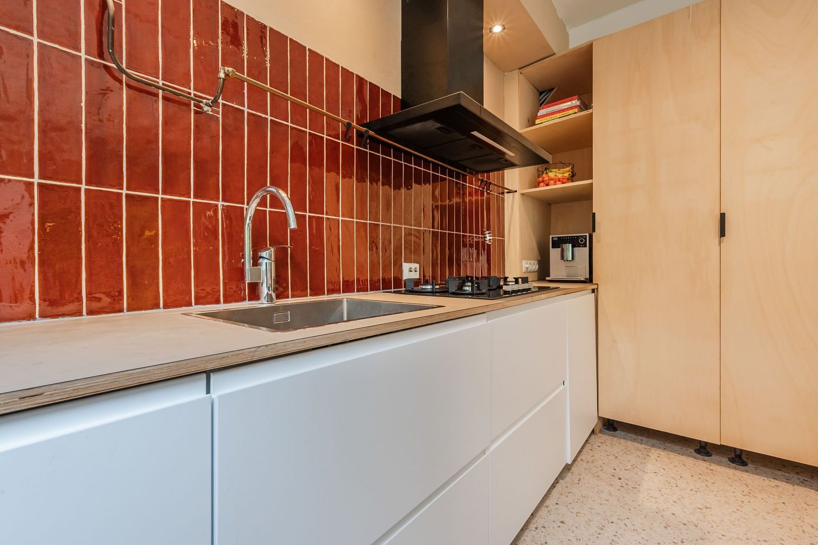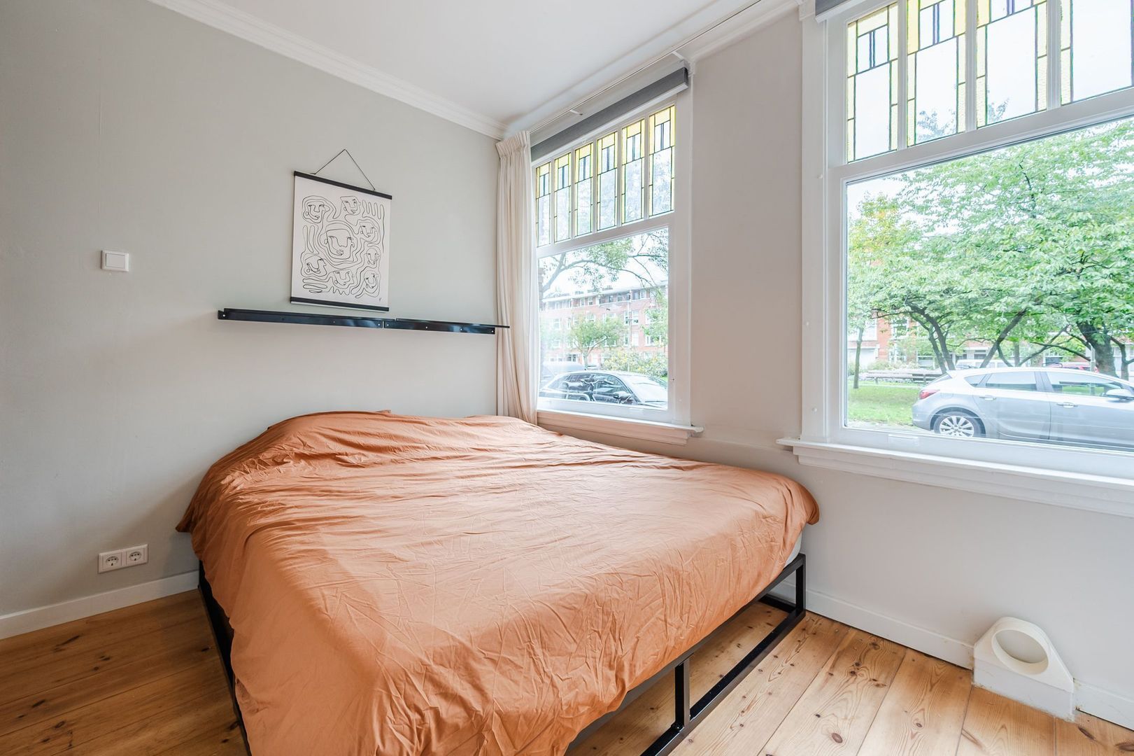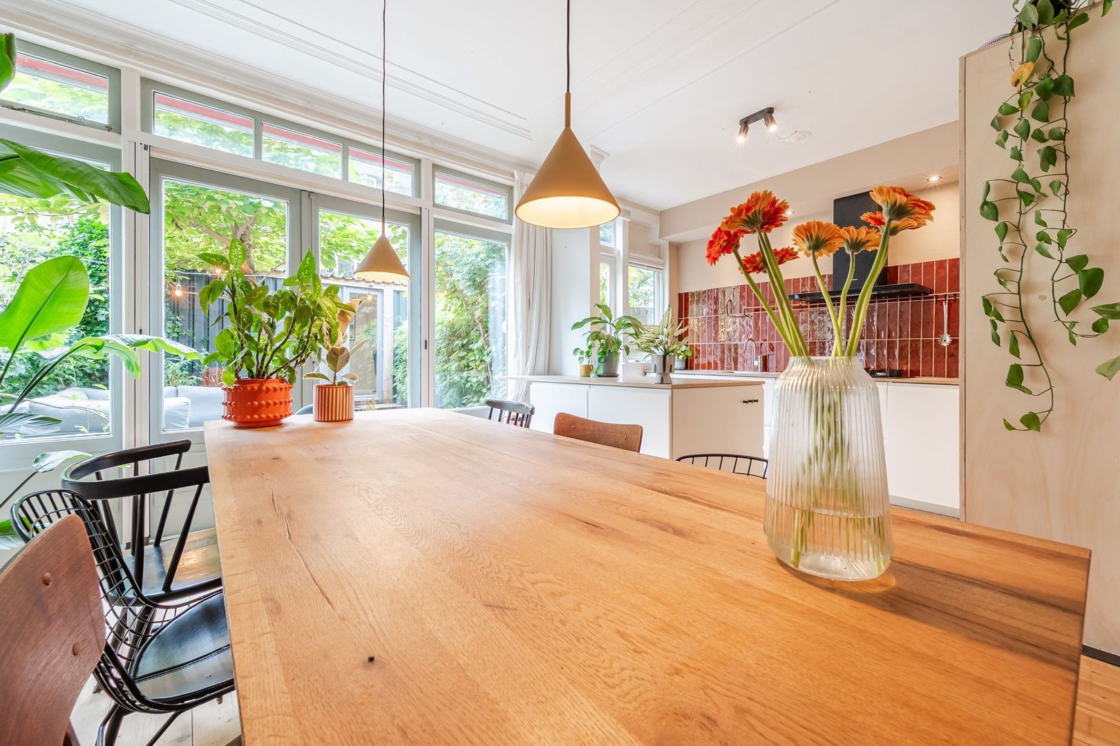 Begane grond: entree, tochtportaal met originele wandbetegeling en hal met aparte toiletruimte (2022) v.v. wandcloset en fonteintje. De slaapkamer bevindt zich aan de voorzijde van het appartement en is d.m.v. een vaste kastenwand afgesloten van de woon-/eetkamer. Ruime en lichte tuingerichte woon-/eetkamer die middels openslaande deuren toegang biedt tot de op het westen gelegen achtertuin v.v. een multifunctioneel geisoleerd tuinhuis die thans in gebruik is als thuiswerkplek annex klusruimte. De a/d achterzijde gelegen open keuken is v.v. een moderne L-vormige keukenopstelling (2021) v.v. 5-pits gaskookplaat, afzuigschouw, vaatwasser, ruimte met was-/drogeraansluiting en CV-opstelling en werkeiland met oven. De modern ingerichte badkamer (2024) is v.v. inloopdouche, wastafelmeubel en inbouwverlichting. Het appartement is afgewerkt met een sfeervolle houtenvloer.