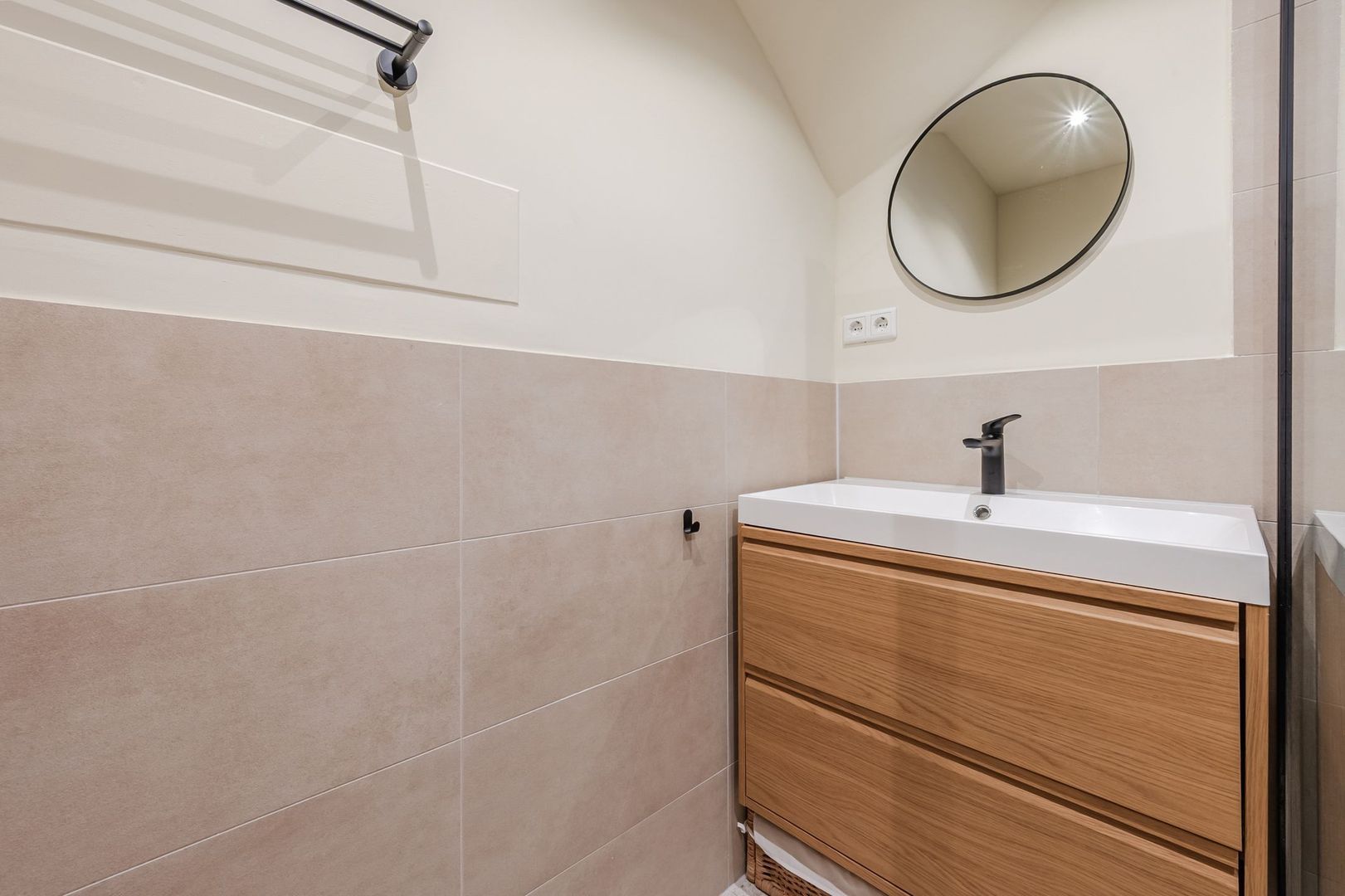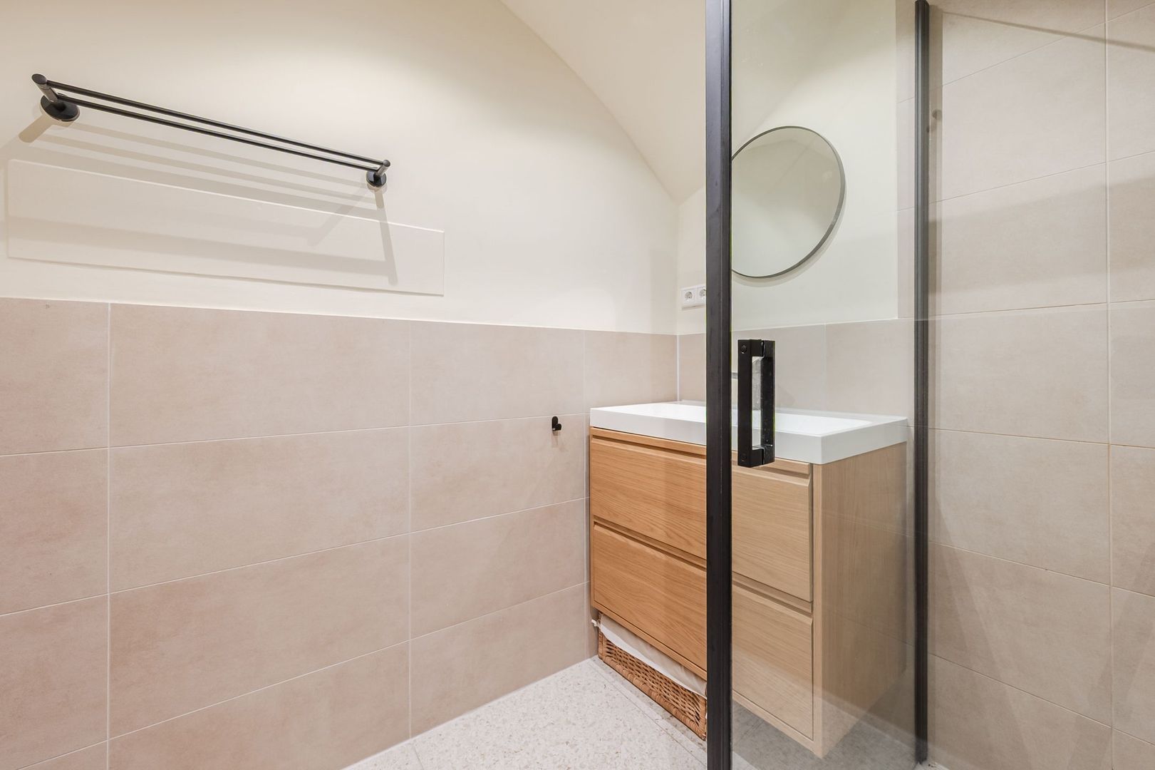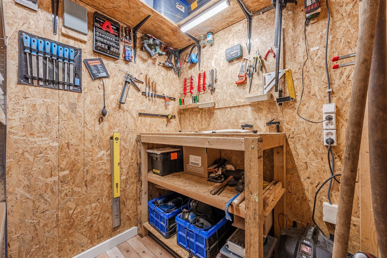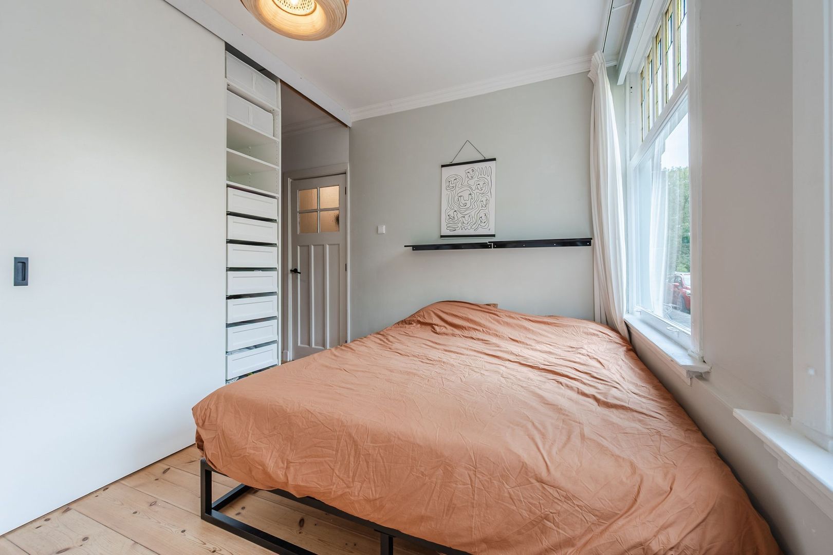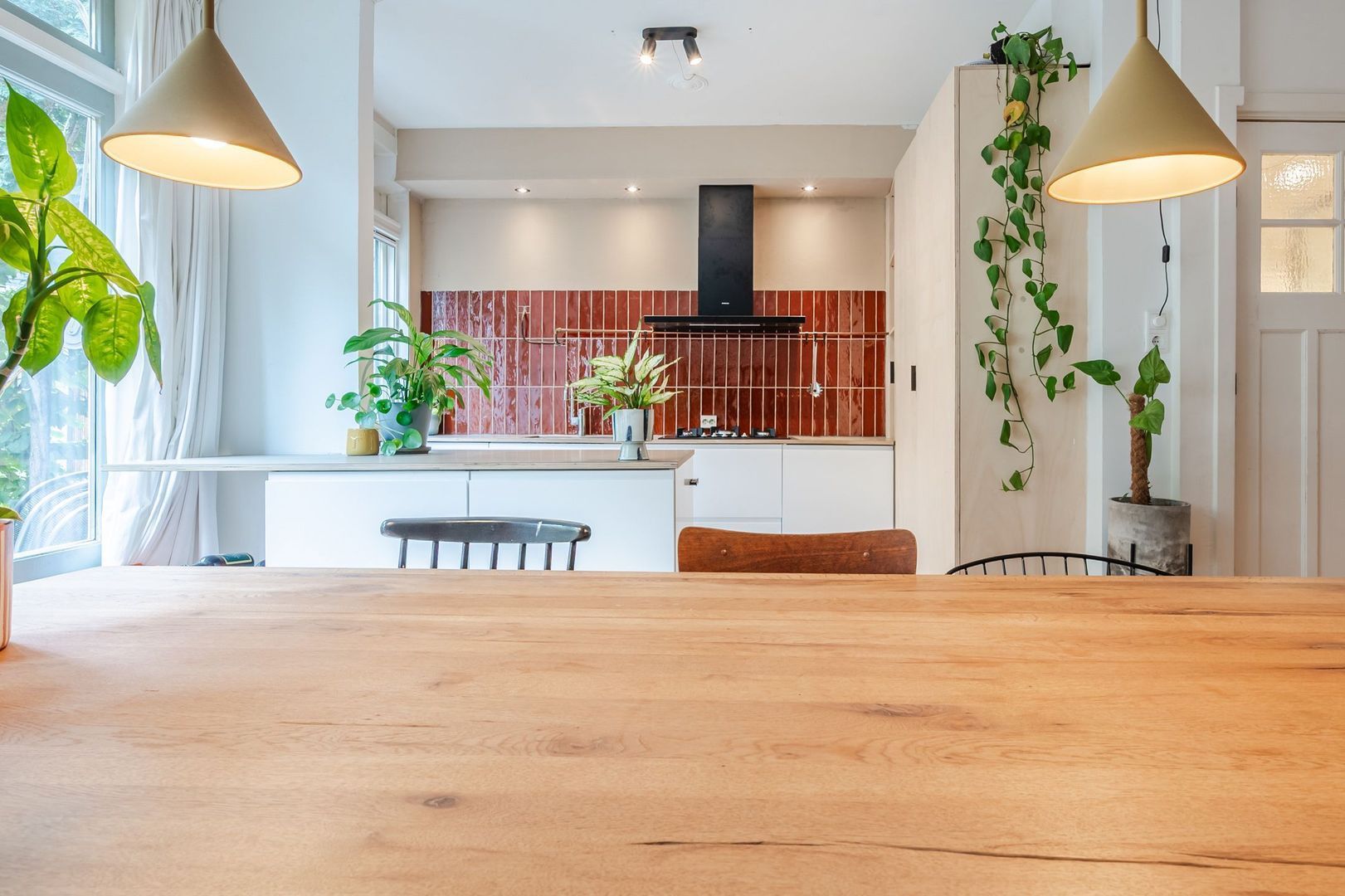 Begane grond: entree, tochtportaal met originele wandbetegeling en hal met aparte toiletruimte (2022) v.v. wandcloset en fonteintje. De slaapkamer bevindt zich aan de voorzijde van het appartement en is d.m.v. een vaste kastenwand afgesloten van de woon-/eetkamer. Ruime en lichte tuingerichte woon-/eetkamer die middels openslaande deuren toegang biedt tot de op het westen gelegen achtertuin v.v. een multifunctioneel geisoleerd tuinhuis die thans in gebruik is als thuiswerkplek annex klusruimte. De a/d achterzijde gelegen open keuken is v.v. een moderne L-vormige keukenopstelling (2021) v.v. 5-pits gaskookplaat, afzuigschouw, vaatwasser, ruimte met was-/drogeraansluiting en CV-opstelling en werkeiland met oven. De modern ingerichte badkamer (2024) is v.v. inloopdouche, wastafelmeubel en inbouwverlichting. Het appartement is afgewerkt met een sfeervolle houtenvloer.