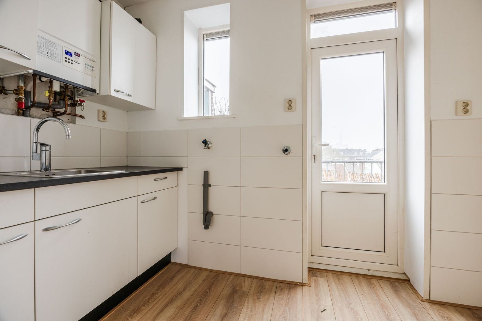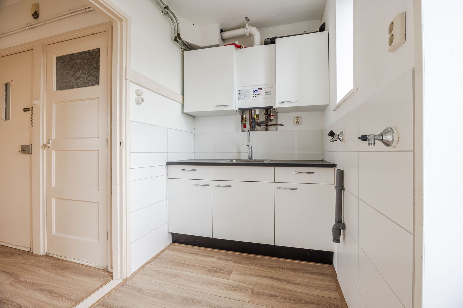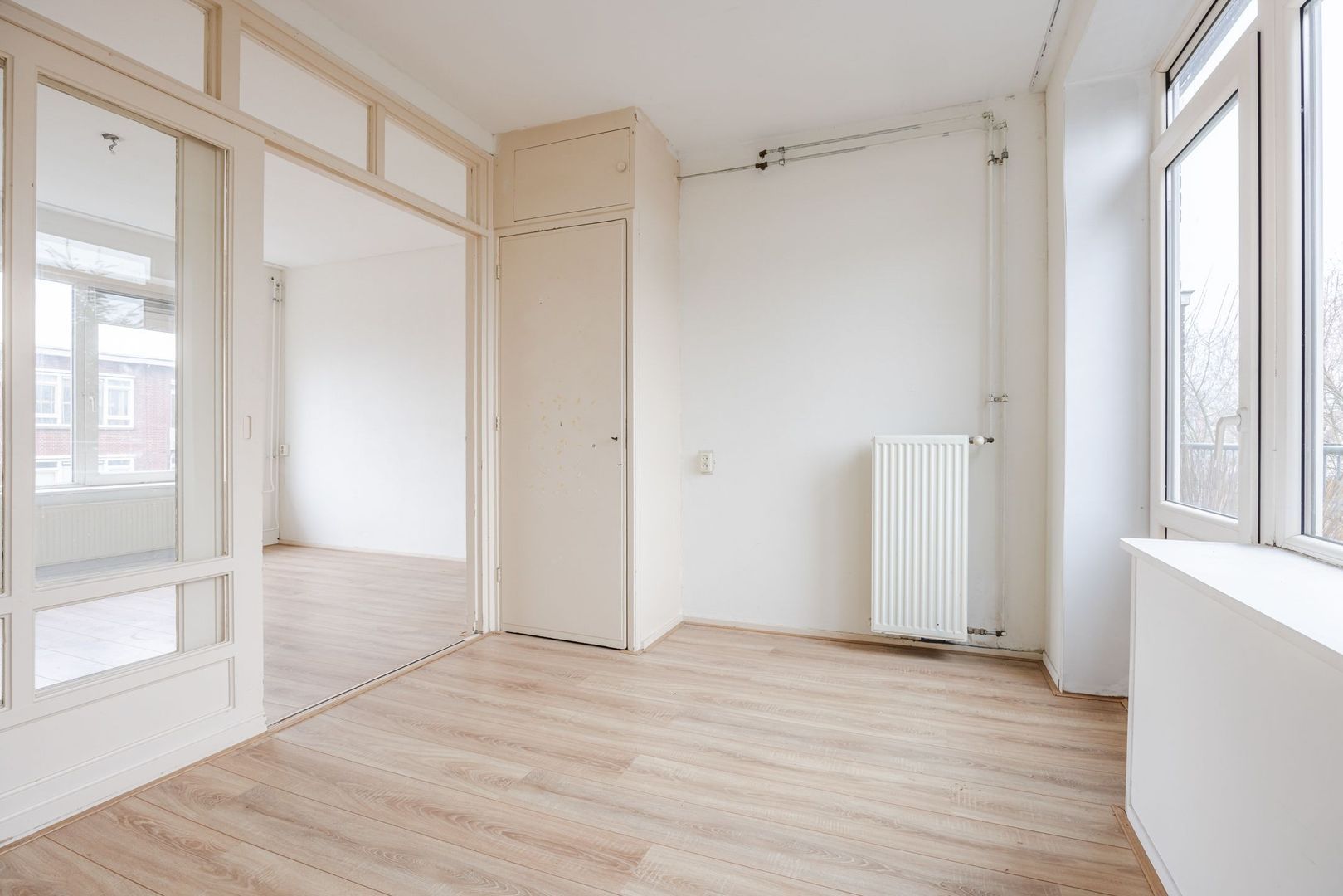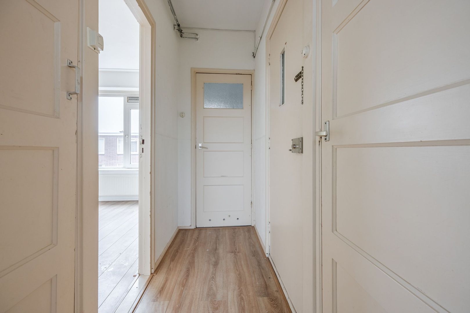 3e verdieping: entree, hal met berg-/meterkast, apart toilet en compacte badkamer met douchehoek en handdoekradiator. De gesloten keuken is gelegen a/d achterzijde, is v.v. een eenvoudig keukenblok, wasmachineaansluiting, vaste kast en de CV-opstelling en biedt toegang tot het balkon. De woonkamer is gelegen a/d voorzijde, is v.v. een vaste kast en biedt middels een schuifdeur toegang tot de a/d achterzijde gelegen slaapkamer die eveneens is v.v. een vaste kast en toegang biedt tot het balkon.
