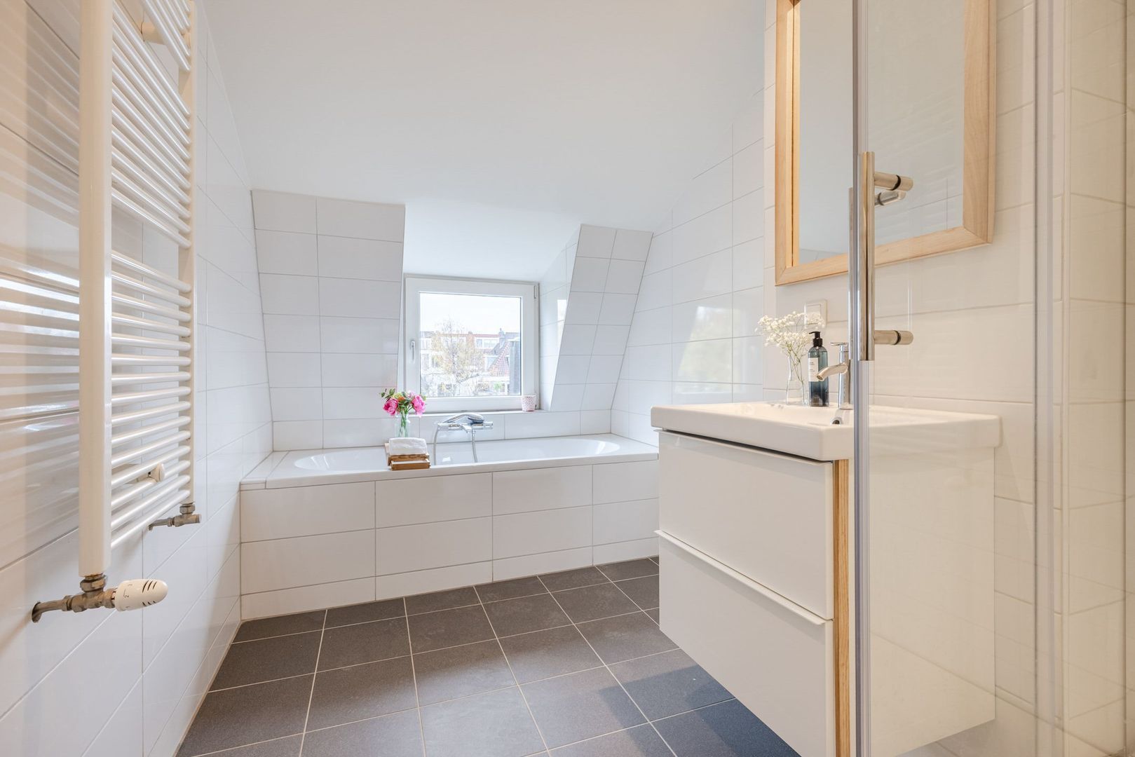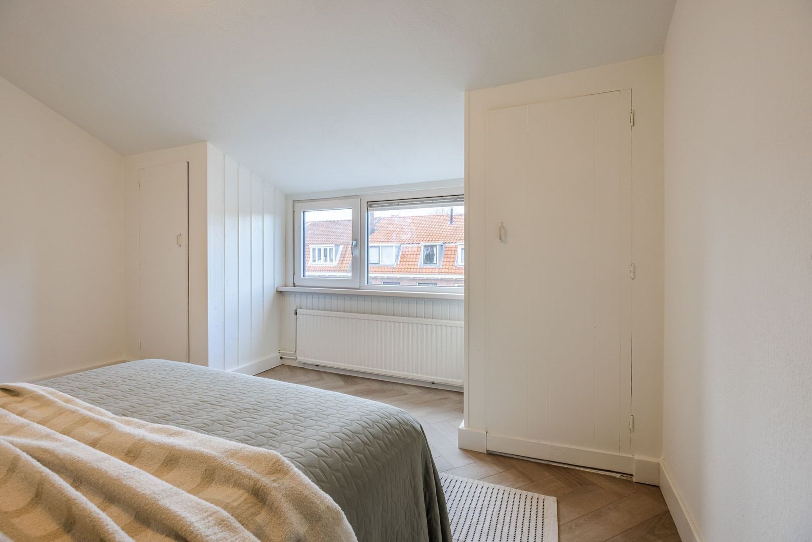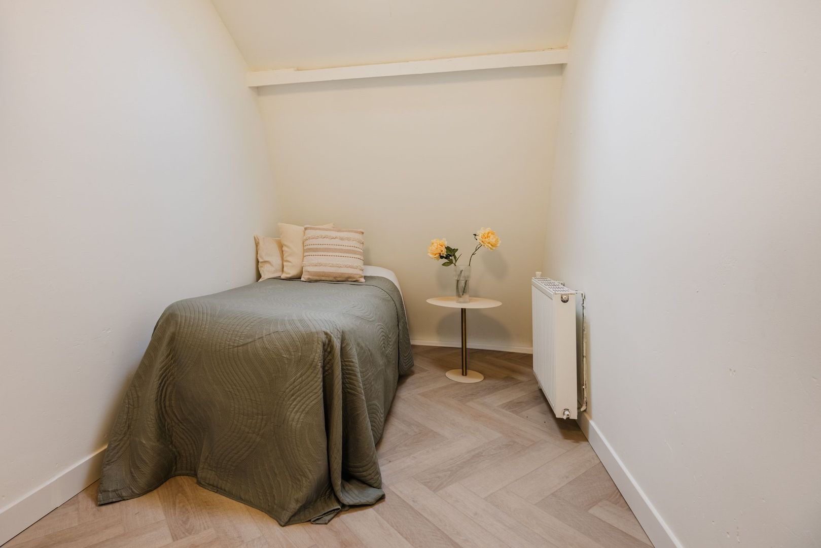 2e verdieping: overloop met aparte toiletruimte v.v. wandcloset en fonteintje. Aan de voorzijde bevinden zich 2 slaapkamers waarvan de hoofdslaapkamer is v.v. een dakkapel en een tweetal vaste kasten. De 3e slaapkamer is gelegen a/d achterzijde en is eveneens v.v. een dakkapel en een tweetal vaste kasten. Tot slot bevindt zich op deze verdieping a/d achterzijde de royale badkamer v.v. ligbad, douchehoek, wastafelmeubel en handdoekradiator. De 2e verdieping is afgewerkt met een prachtige laminaatvloer in visgraatmotief.