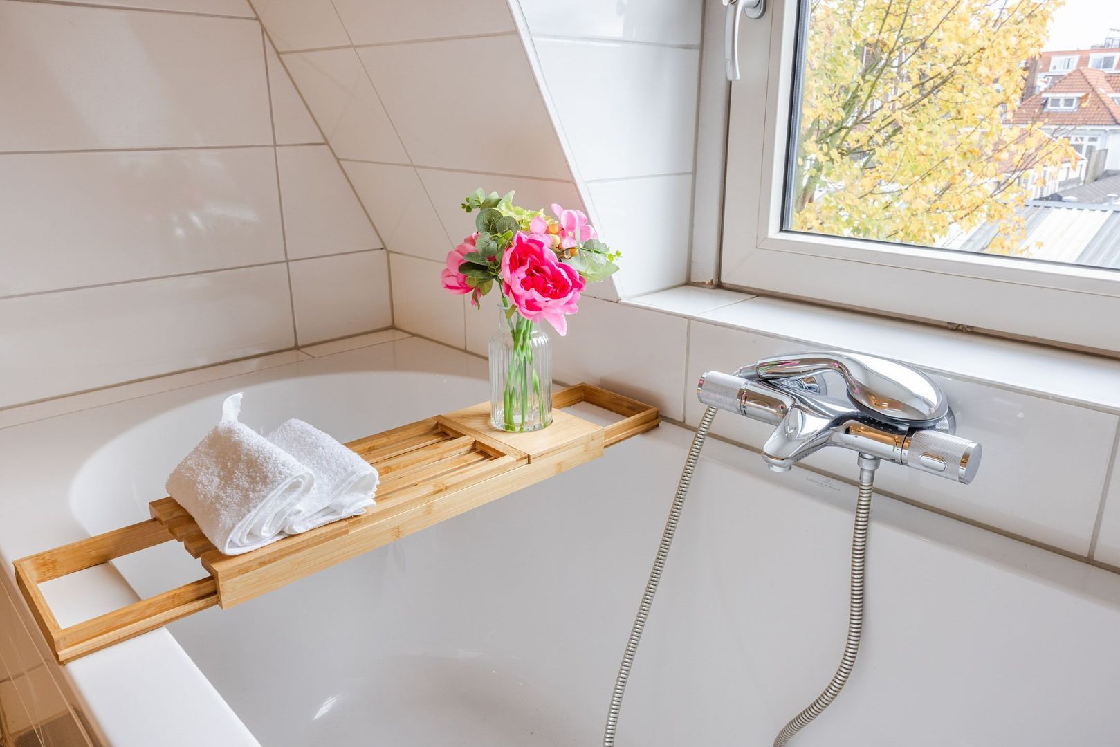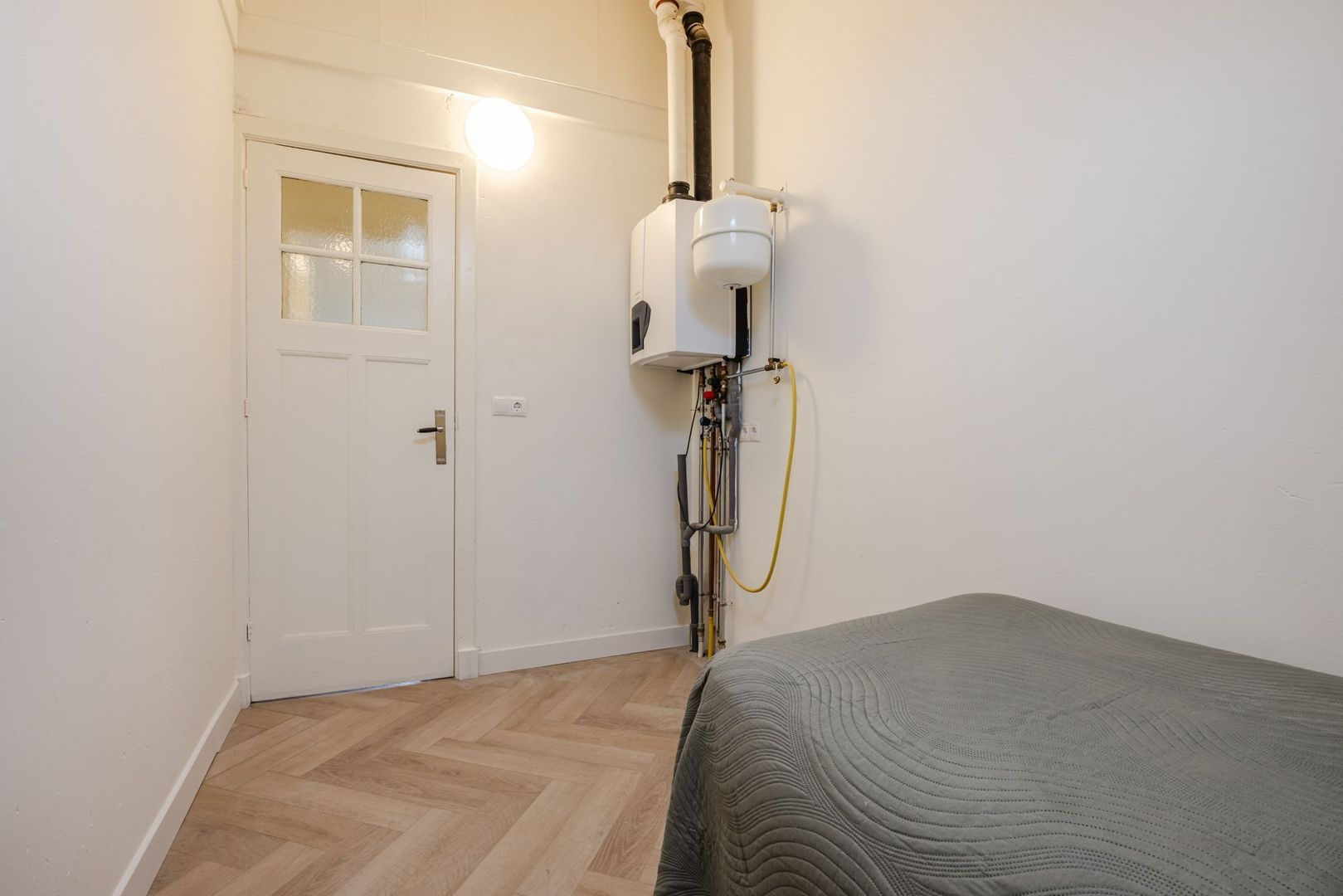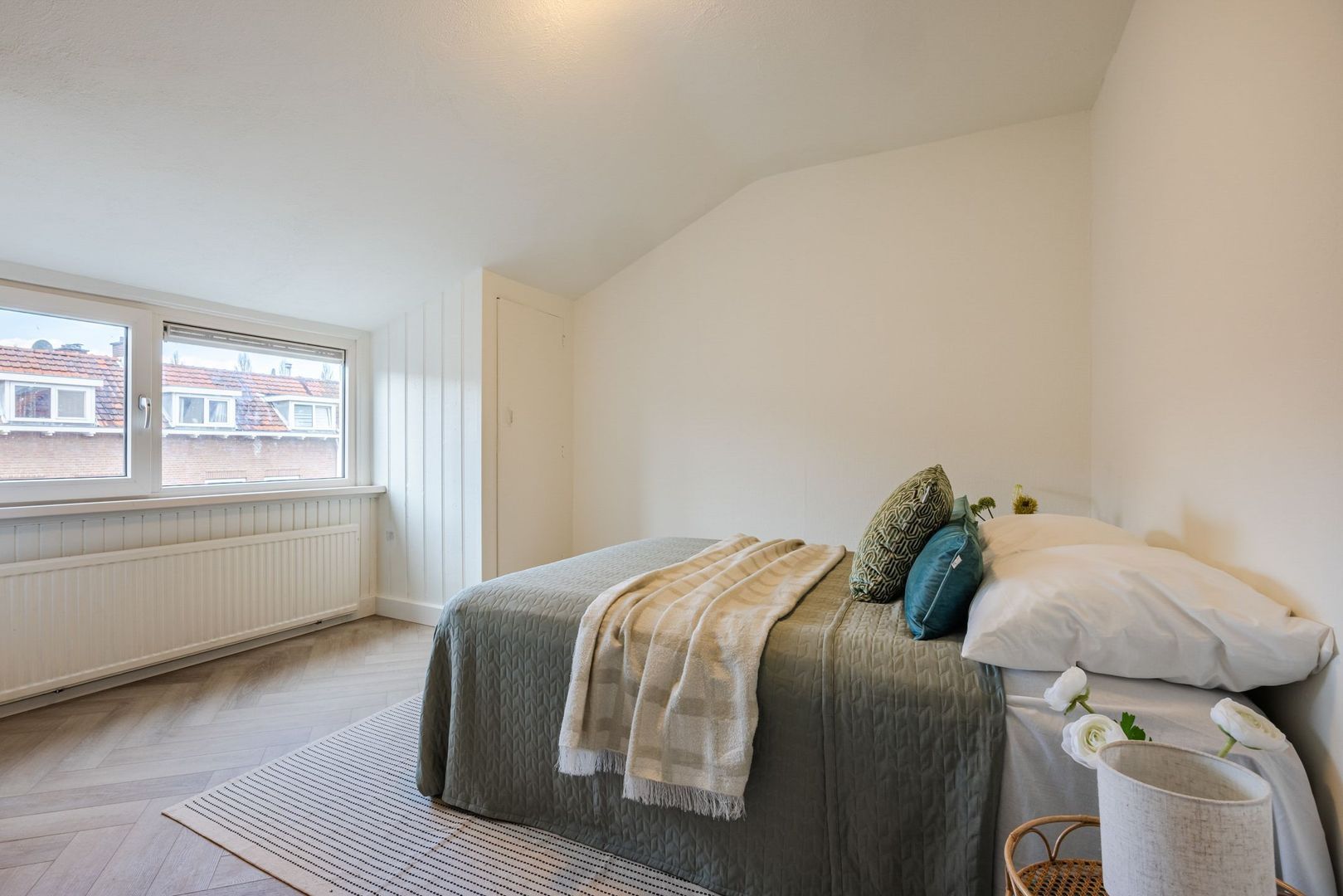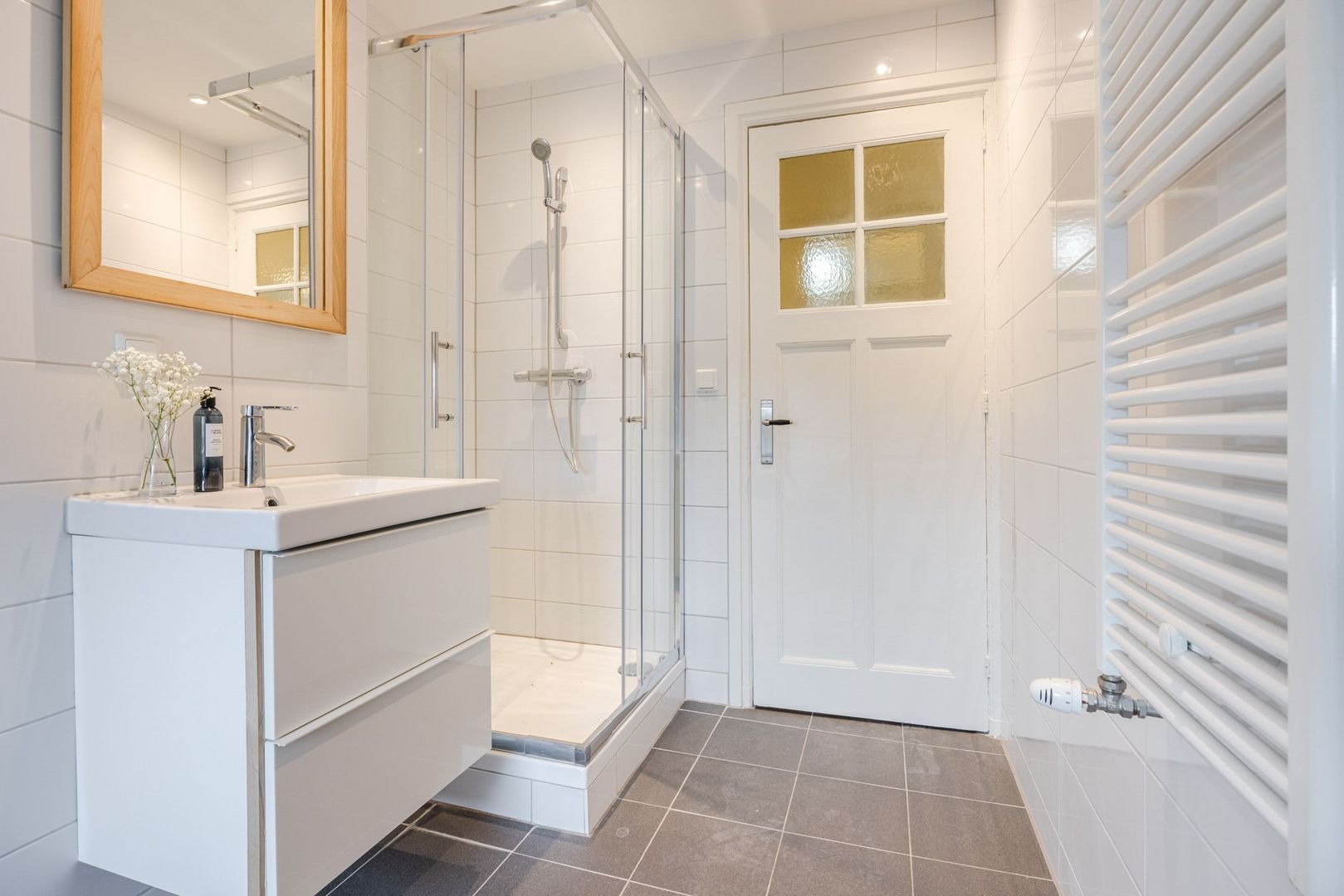 2e verdieping: overloop met aparte toiletruimte v.v. wandcloset en fonteintje. Aan de voorzijde bevinden zich 2 slaapkamers waarvan de hoofdslaapkamer is v.v. een dakkapel en een tweetal vaste kasten. De 3e slaapkamer is gelegen a/d achterzijde en is eveneens v.v. een dakkapel en een tweetal vaste kasten. Tot slot bevindt zich op deze verdieping a/d achterzijde de royale badkamer v.v. ligbad, douchehoek, wastafelmeubel en handdoekradiator. De 2e verdieping is afgewerkt met een prachtige laminaatvloer in visgraatmotief.