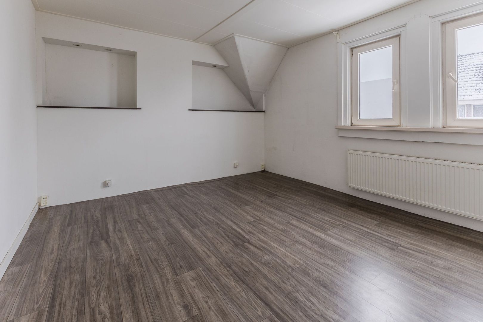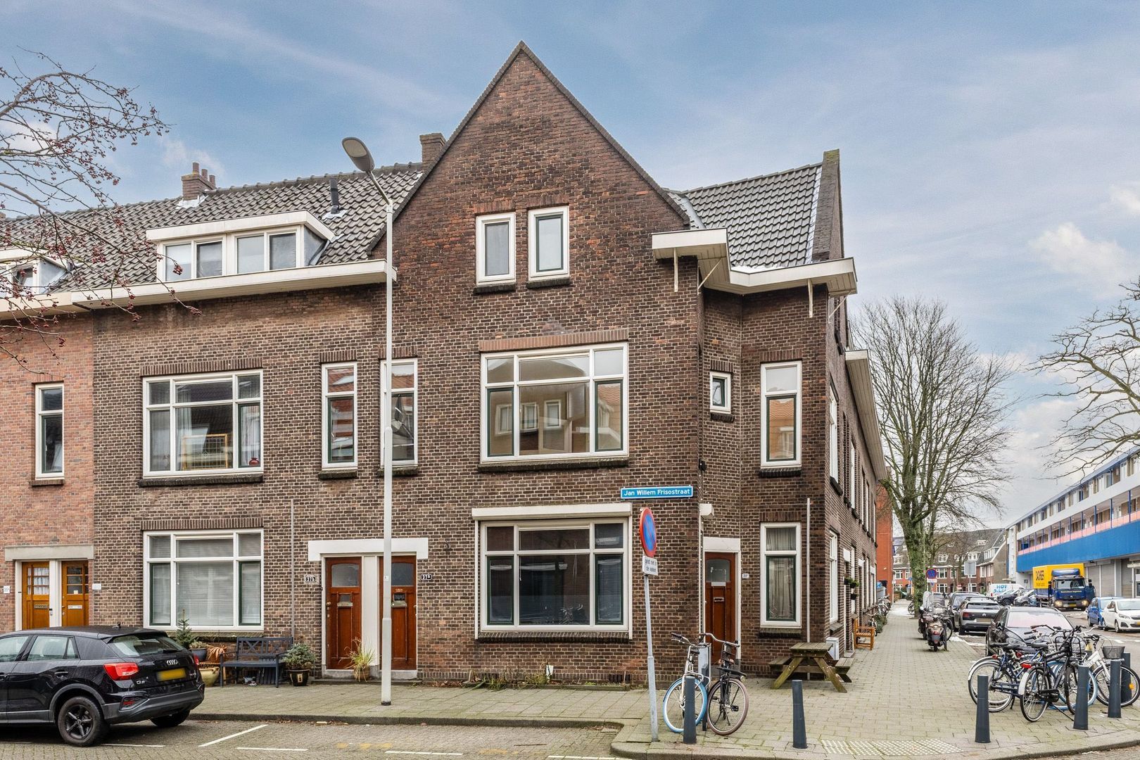 1e verdieping: overloop met apart toilet en trapopgang naar de 2e verdieping. De 1e kamer die is v.v. een bergkast/meterkast is gelegen aan de zijde van de Jan Willem Frisostraat en kan uitstekend dienst doen als werk-/slaapkamer. De gesloten keuken is gelegen a/d achterzijde van het appartement en is v.v. en vaste kast en een eenvoudige keukenopstelling v.v. vaatwasser, kookplaat en afzuigschouw. De speels ingedeelde, lichte en royale woonkamer is gelegen aan de zijde van de Prins Frederik Hendrikstraat en is v.v. een schouw. De 1e verdieping is afgewerkt met een laminaatvloer.