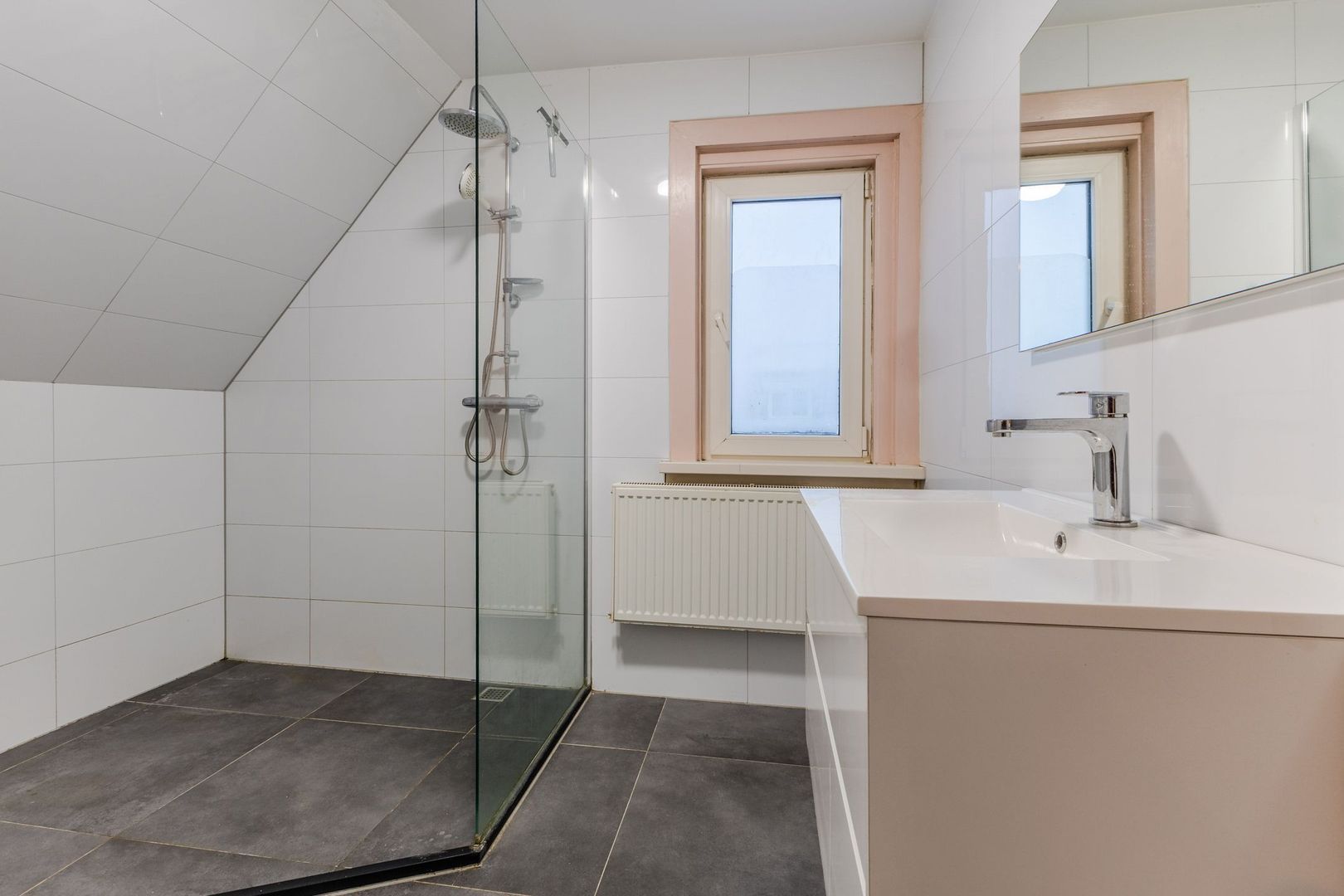 2e verdieping: overloop met toegang tot de ruime en geheel betegelde badkamer v.v. grote inloopdouche, wastafelmeubel en aparte bergkast met de CV-opstelling. Verder bevinden zich op deze verdieping een 4-tal slaapkamers waarvan er 2 zijn v.v. een vaste kast.