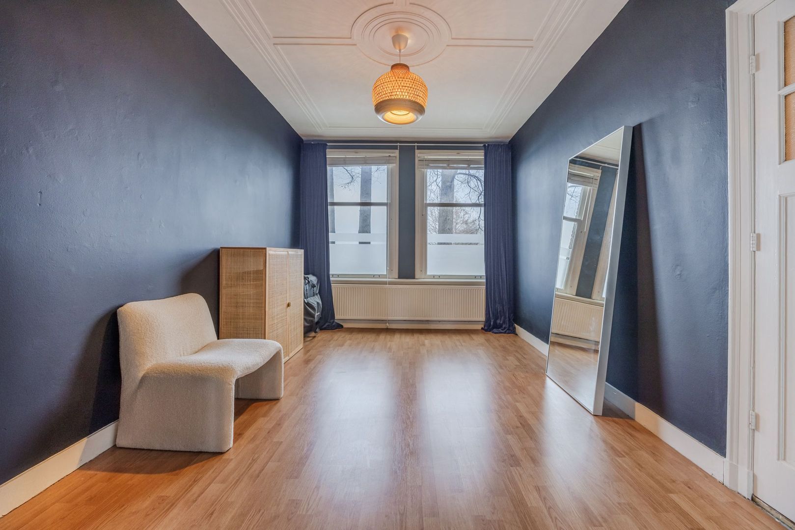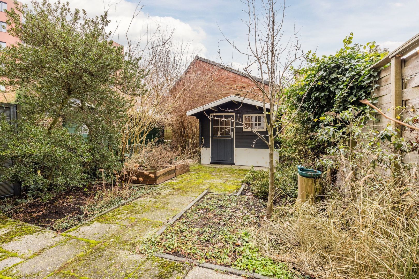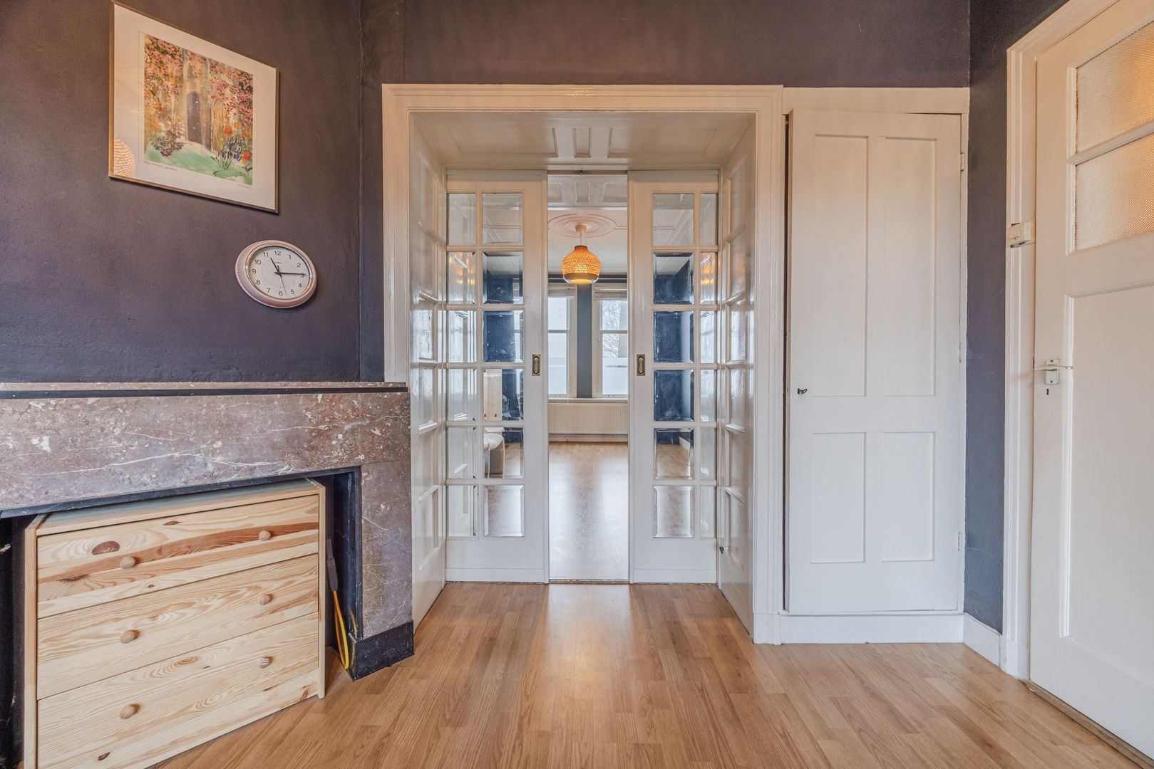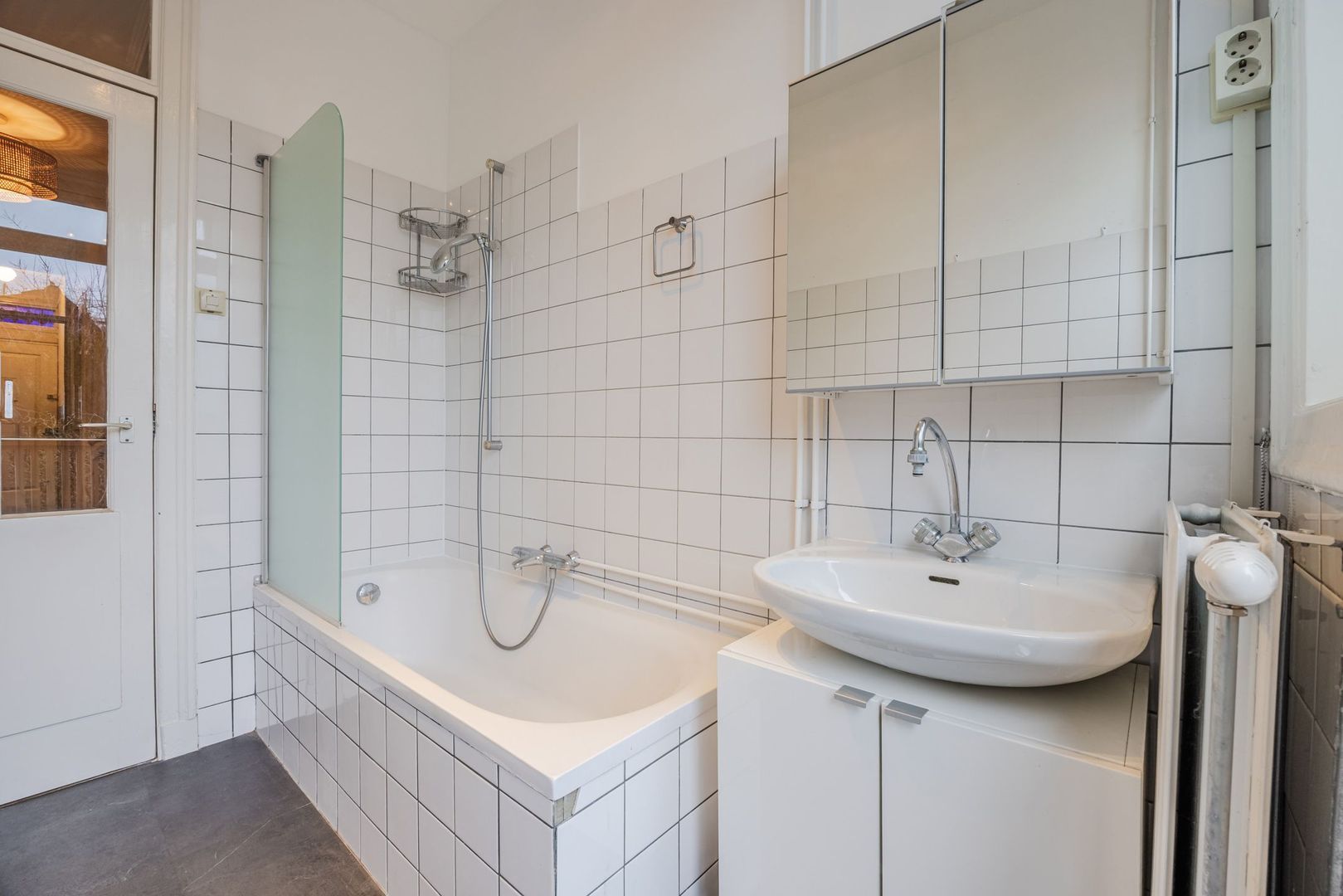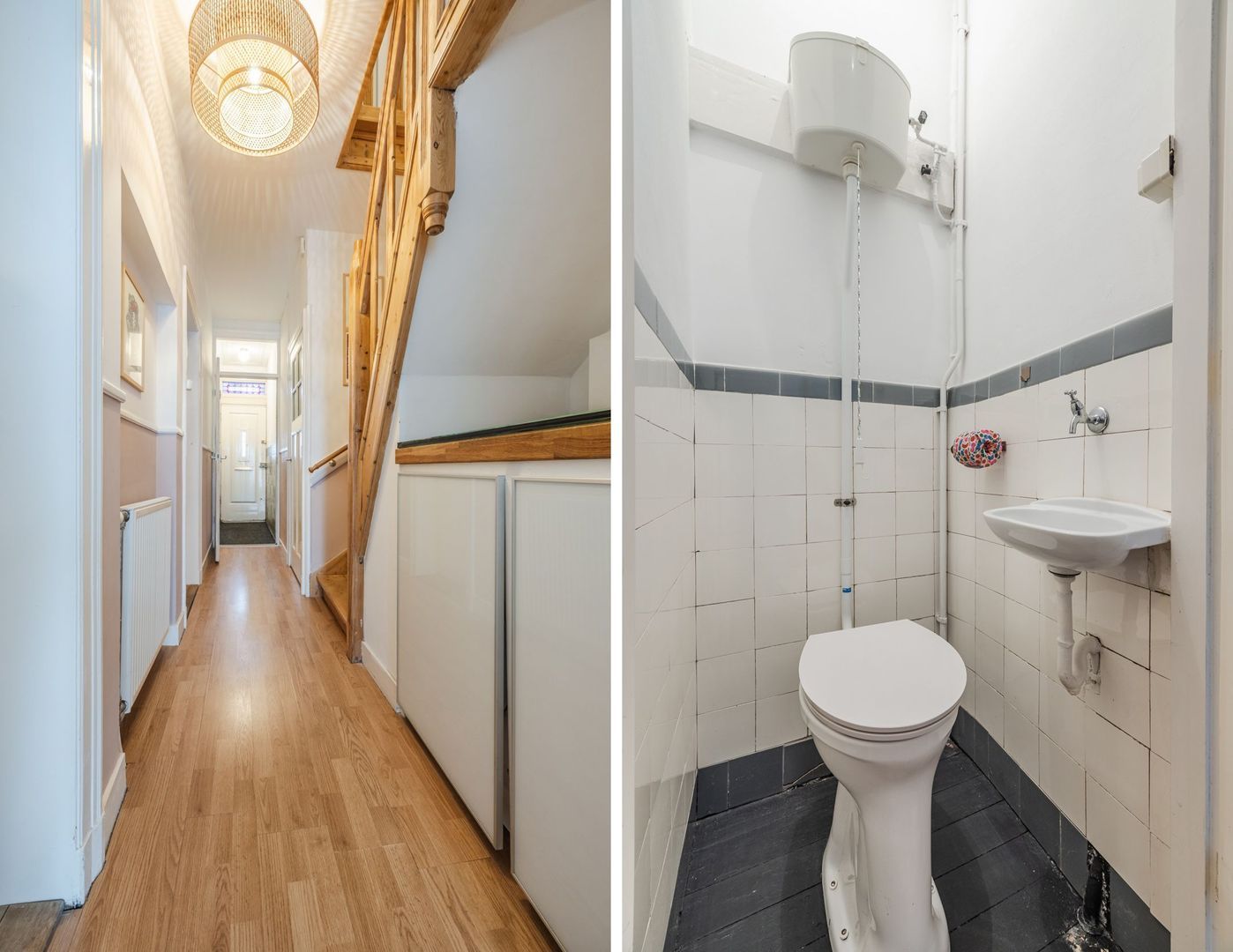 Begane grond: entree, tochtportaal, hal met trap-/meterkast, trapopgang naar de 1e verdieping, was-/drogeraansluiting en apart toilet. De badkamer is gelegen a/d achterzijde en is v.v. een ligbad met douchegelegenheid en wastafel en biedt toegang tot de achtertuin. Sfeervolle kamer ensuite die momenteel in gebruik is als een werk-/zitkamer a/d voorzijde v.v. vaste kast en originele schouw en een slaapkamer a/d achterzijde v.v. vaste kast, originele schouw en openslaande deuren naar de achtertuin. De achtertuin (ca. 6 x 12m) is gesitueerd op het zuidwesten en v.v. een houten berging. Vanuit de achtertuin is er middels een luik toegang tot de kruipruimte die eventueel als bergruimte in gebruik kan worden genomen. De begane grondvloer is afgewerkt met een laminaatvloer.