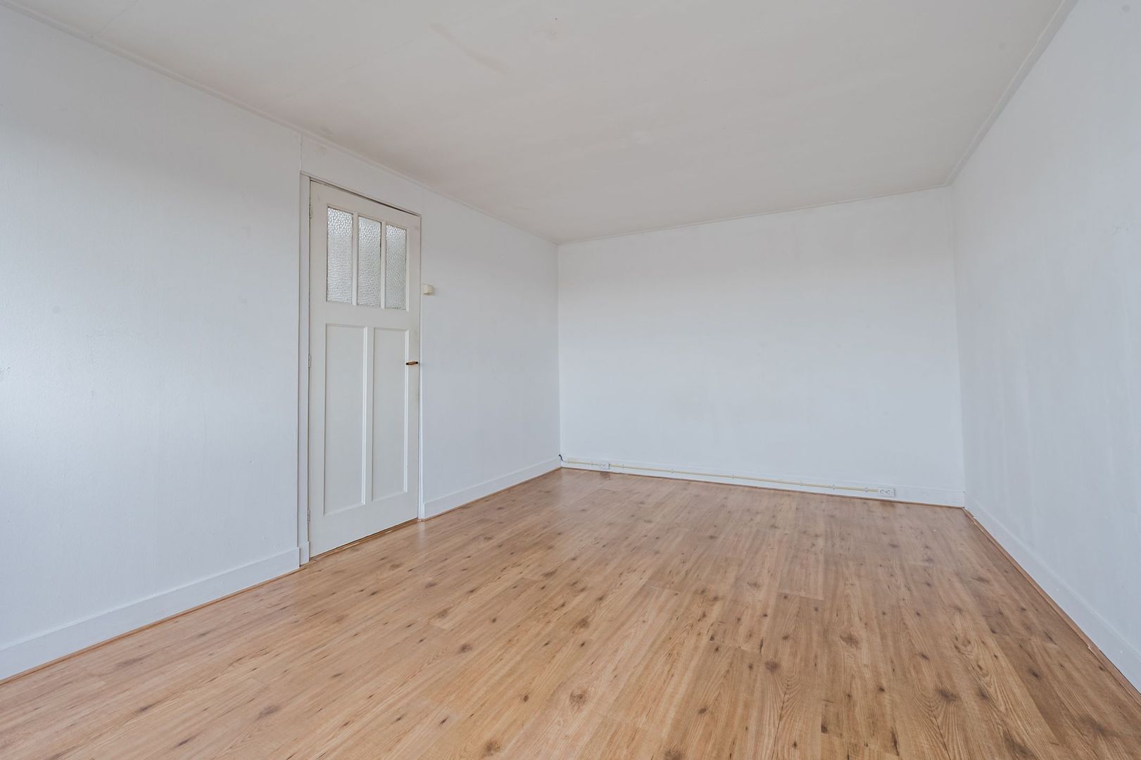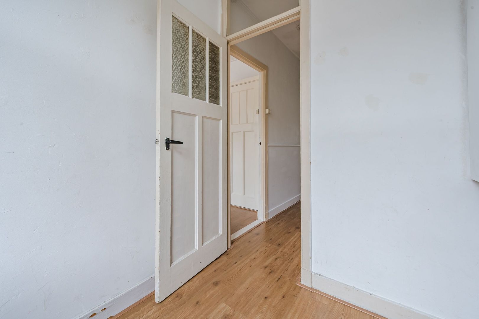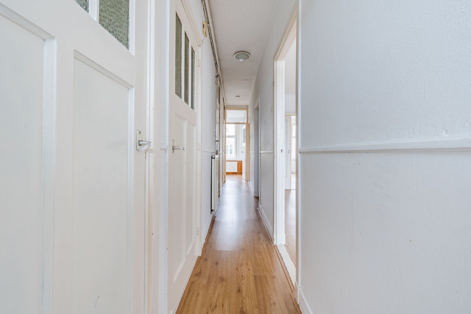 1e verdieping: ruime hal met apart toilet, trapkast en trapopgang naar de 3e verdieping. Heerlijk ruime en lichte woonkamer ensuite met marmeren schouw, vaste kast en erker in de voorgevel. De gesloten keuken bevindt zich a/d achterzijde en is v.v. een eenvoudig keukenblok. Tot slot bevindt zich op deze verdieping een slaap-/werkkamer a/d voorzijde met meterkast. De 1e verdieping is afgewerkt met een laminaatvloer.