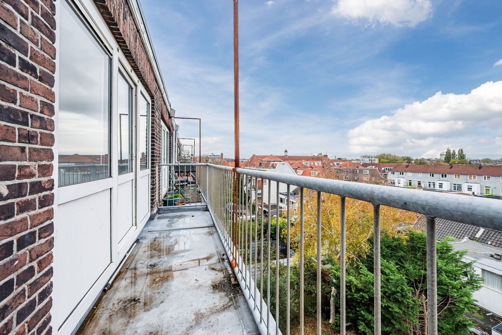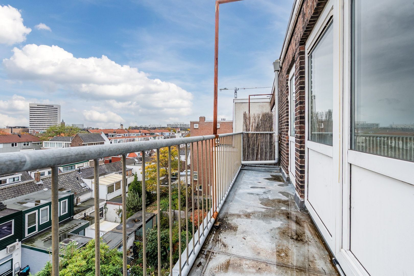 3e verdieping: overloop met de CV-opstelling en daklicht. Zeer royale hoofdslaapkamer met toegang tot het zonnige balkon op het zuidwesten. De badkamer is v.v. douchehoek en wastafel en geeft eveneens toegang tot het balkon. De 3e verdieping is afgewerkt met een laminaatvloer.